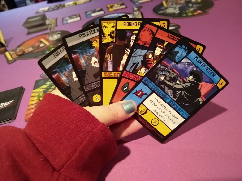 This was a great deck builder to add to my collection, and I’m looking forward to playing it more! As someone who isn’t a diehard fan of the Cowboy Bebop anime myself, I can see plenty of deck building fans loving this one too. I really like the movement mechanic for the characters, and how chaotic it can get, especially when you really want certain characters on your planet so you can use their communal ability. It was a quick learn, and a really enjoyable game, and I know there’s so much more strategy to be had. Definitely recommend this one a ton!