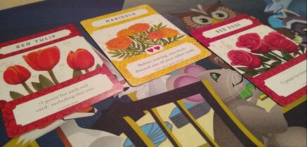 I’d say this is light enough for a wide age range, probably from 6+. I also thought that it might be well-liked with older audiences for both the theme and how chill it comes across. We aren’t painting the flowers, but I got some very Bob Ross vibes from this. “Beer and pretzel” gamers might like this as well, since there’s no heavy strategy involved.