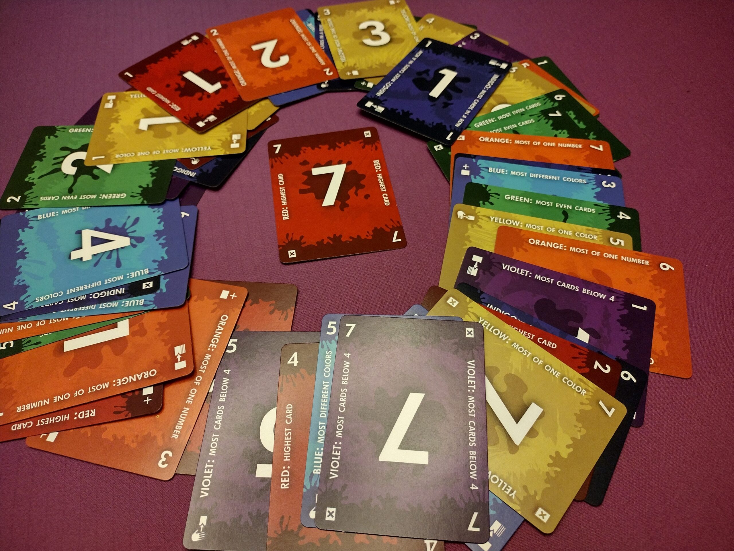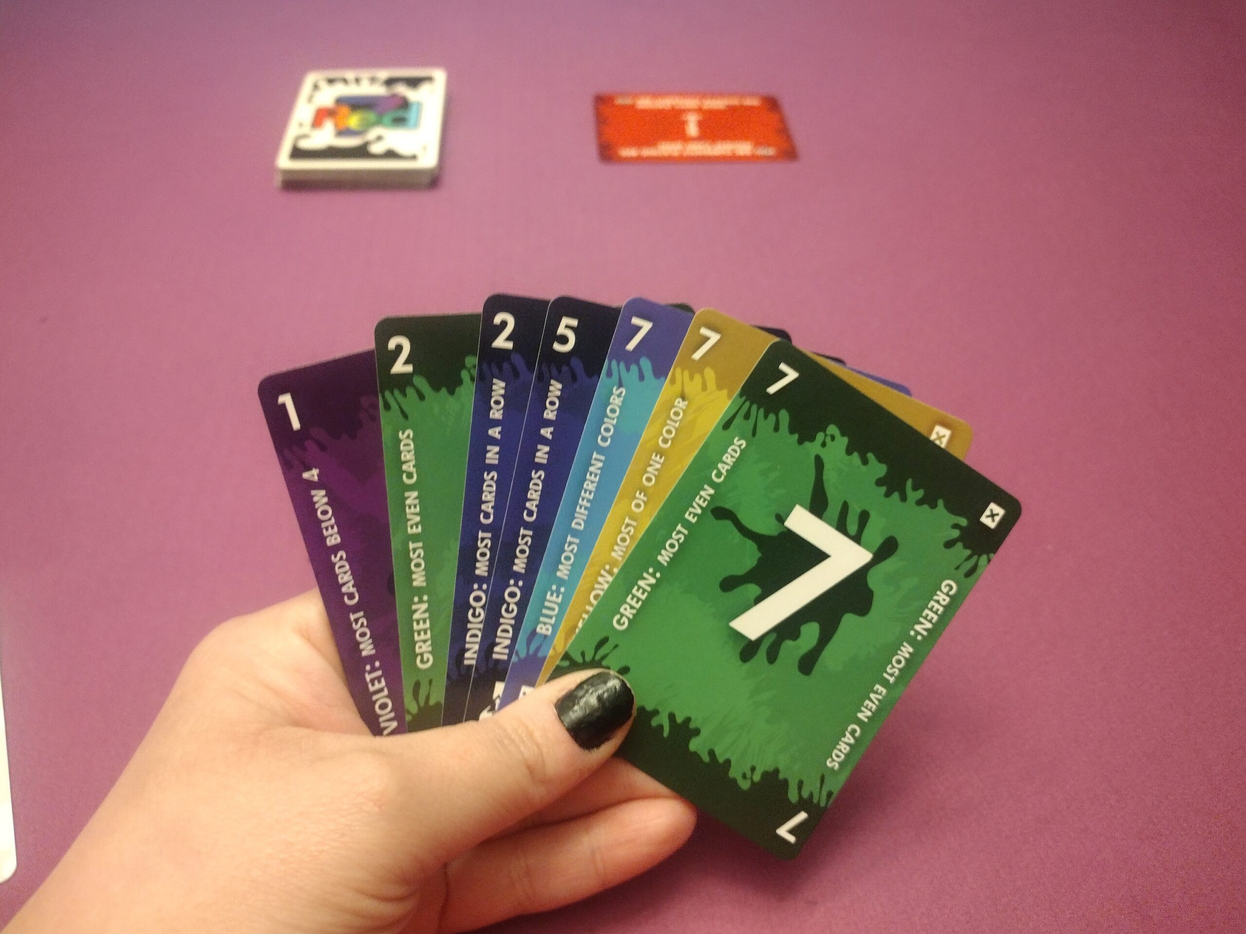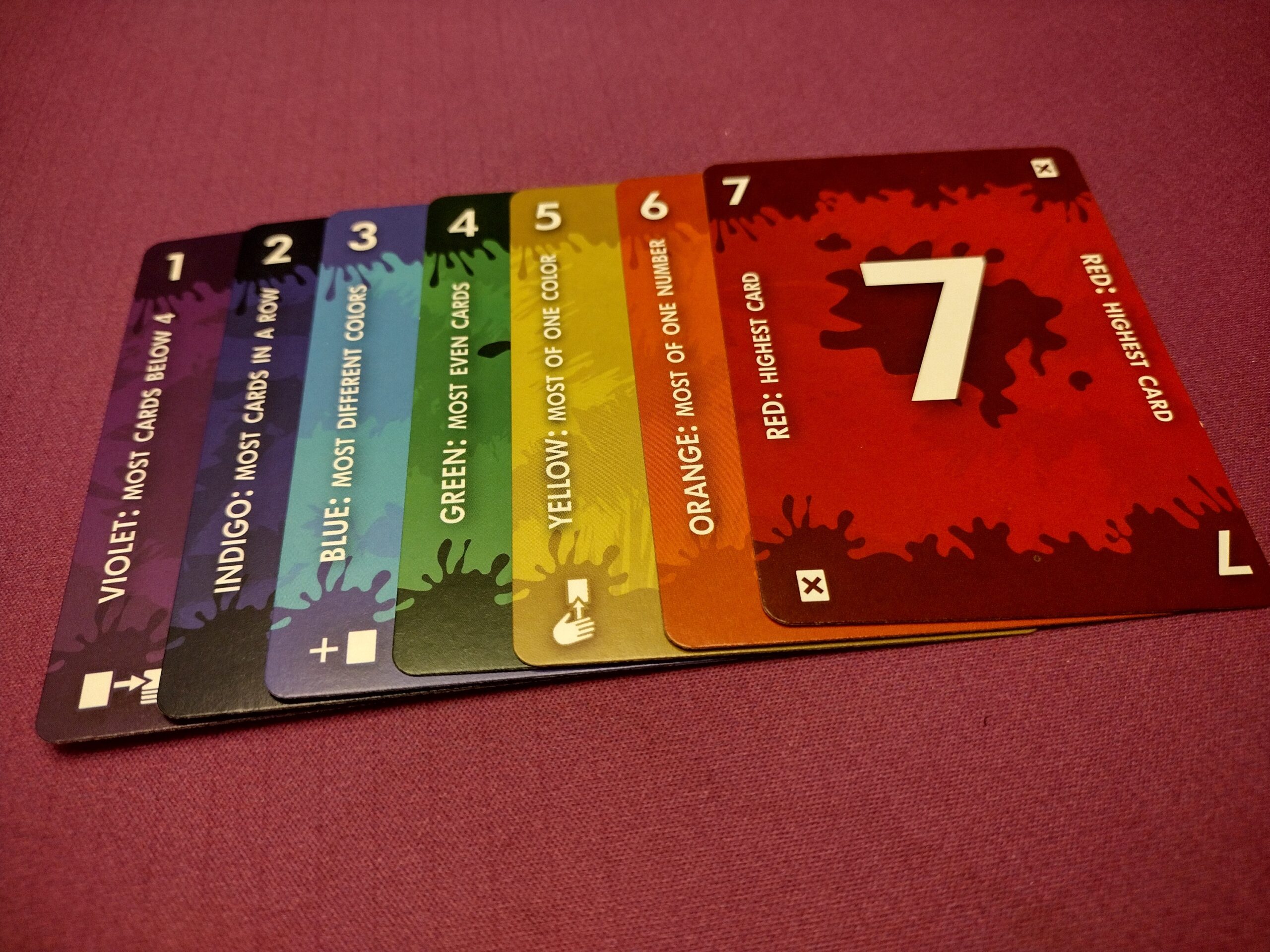- Cards are labeled with their color names, which is nice in case you have trouble telling the colors apart (indigo and violet are very close, in my opinion), plus it is also labeled with that color’s win condition which is convenient