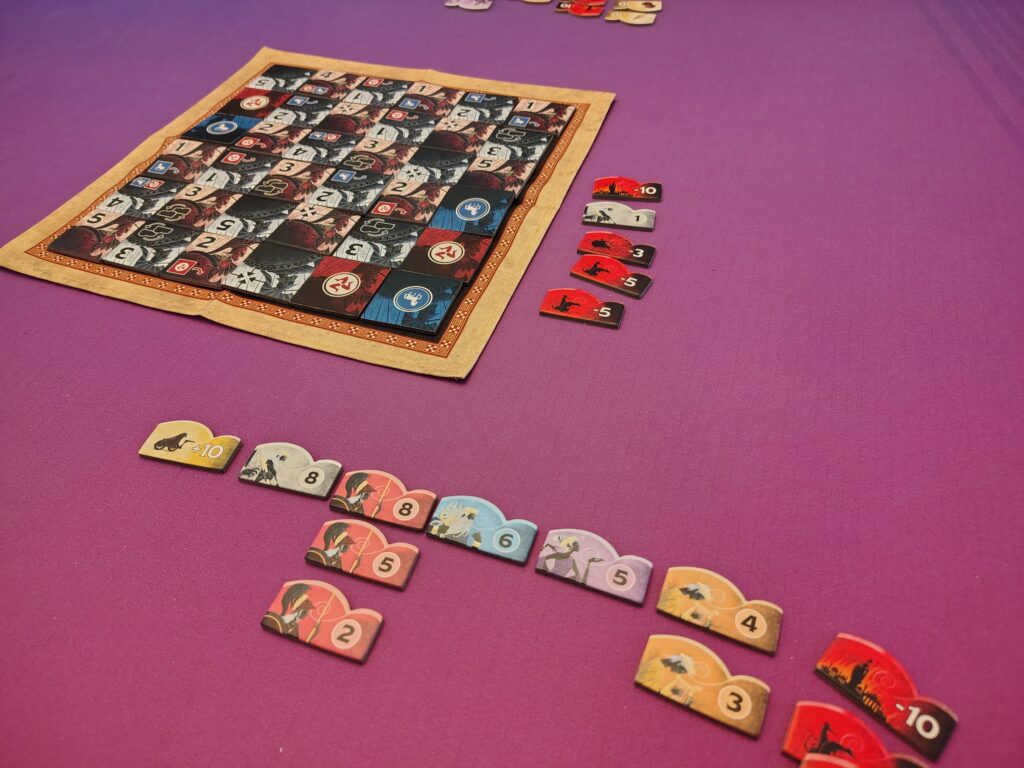 ⚙️Area Influence – When a row/column is completed, players will total their values and the highest value wins, which gives them their choice of the 2 favor tokens for that line