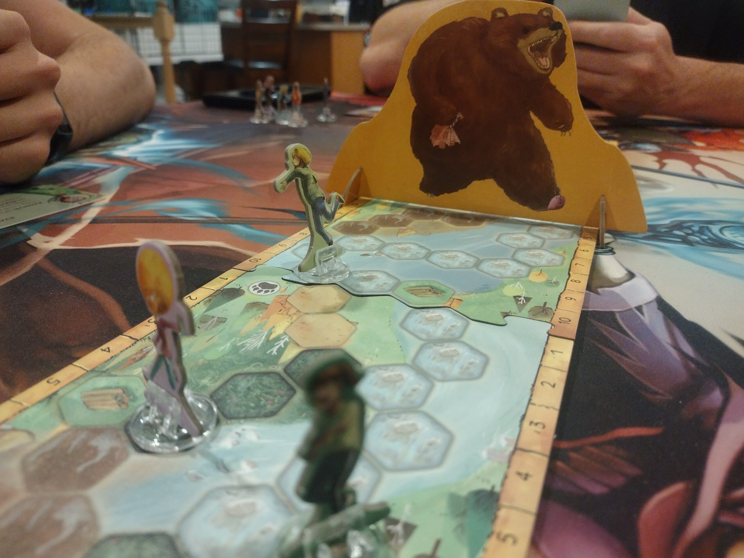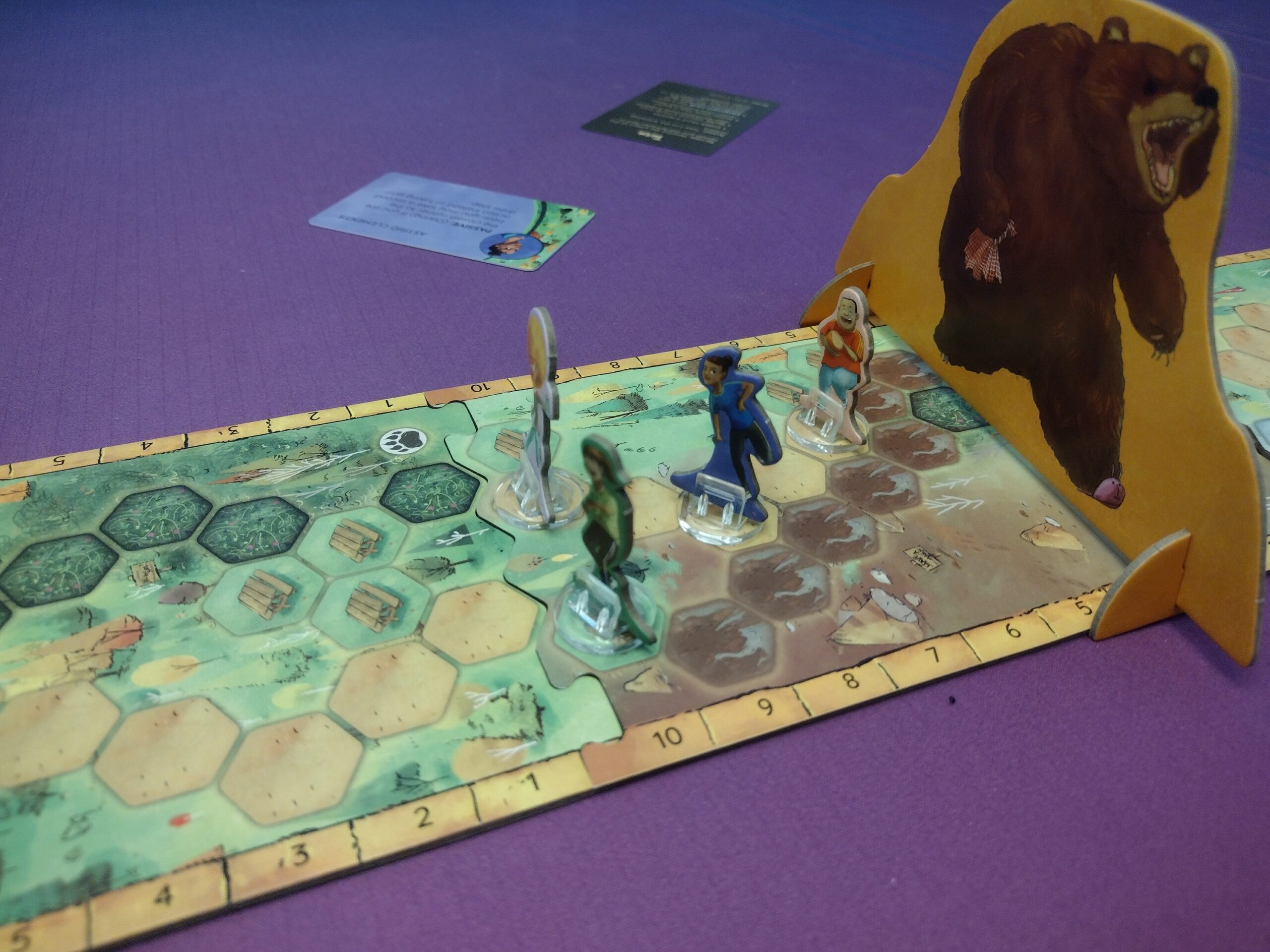 • Components – I like the big, intimidating bear standee! The cards, standees, and boards, overall, are nice quality