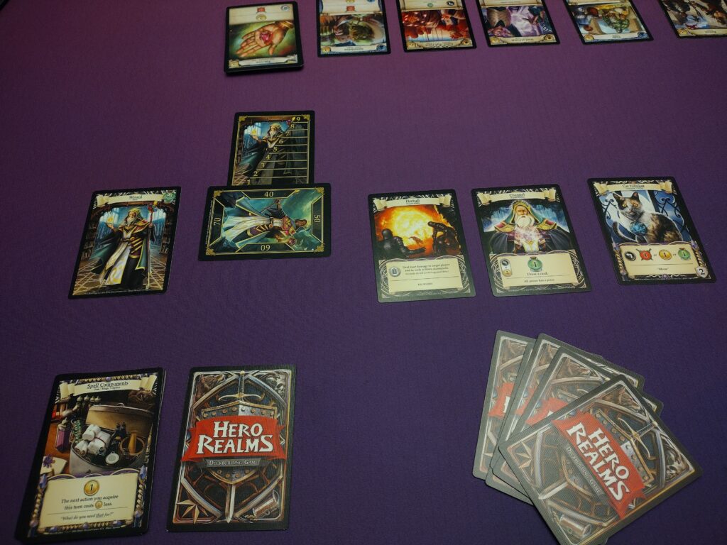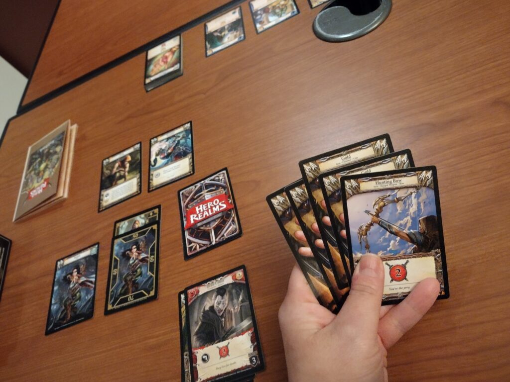 Deck Building – Players start with a basic deck of cards, either all identical to one another, or asymmetric based on a chosen character. They will have to build an improved deck by purchasing action, item, and champion cards. Actions and items are played for various effects (attack, gold, healing, et cetera) while champions stay out in front of players once played, to help in protecting their health, and so players can use them again on future turns.
