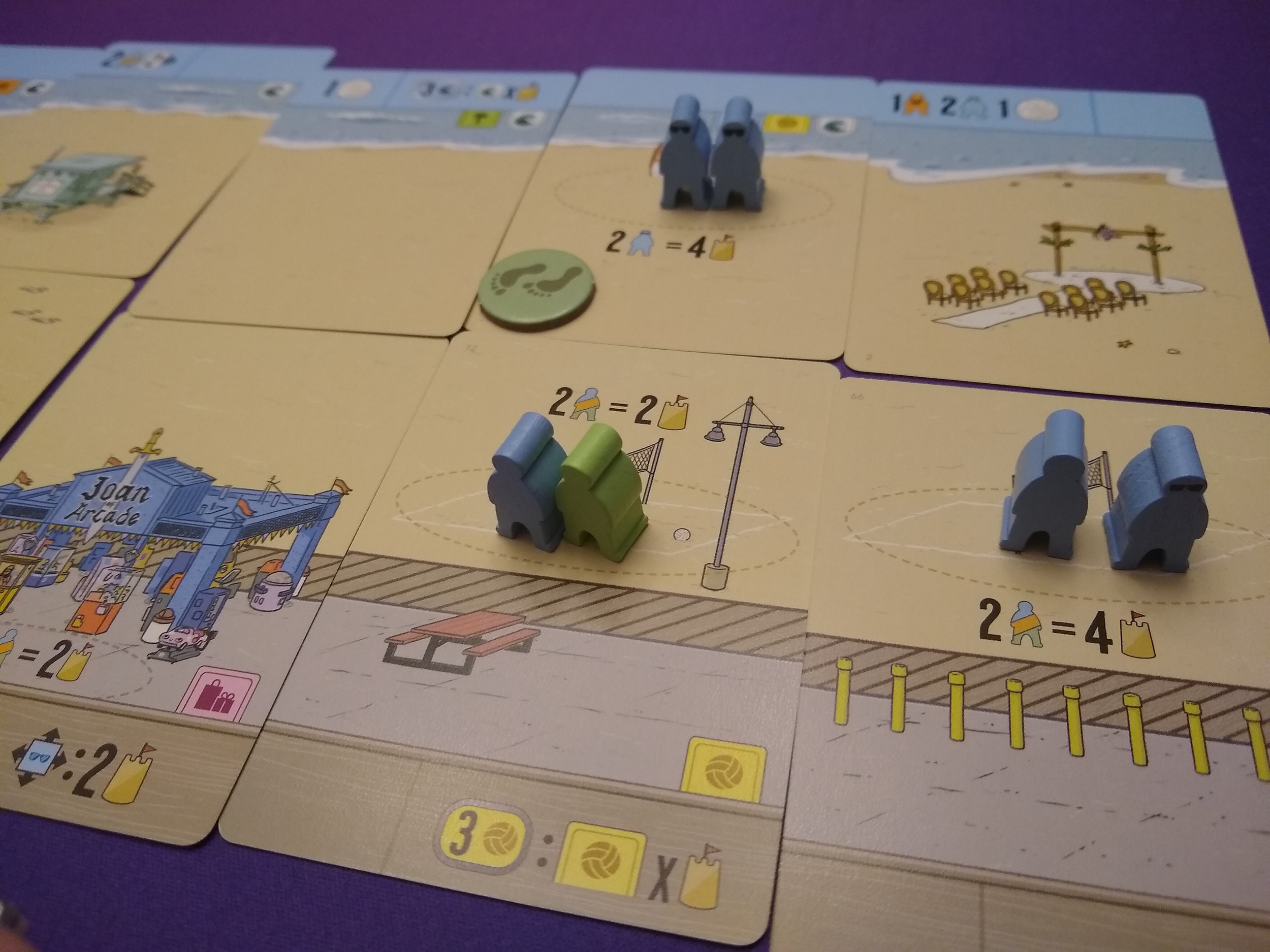 For me, this was a super calm game with some simple drafting and card placement that made a cute beach at the end! It has a bit of a puzzley feel as you choose the best cards and the best placement for them.