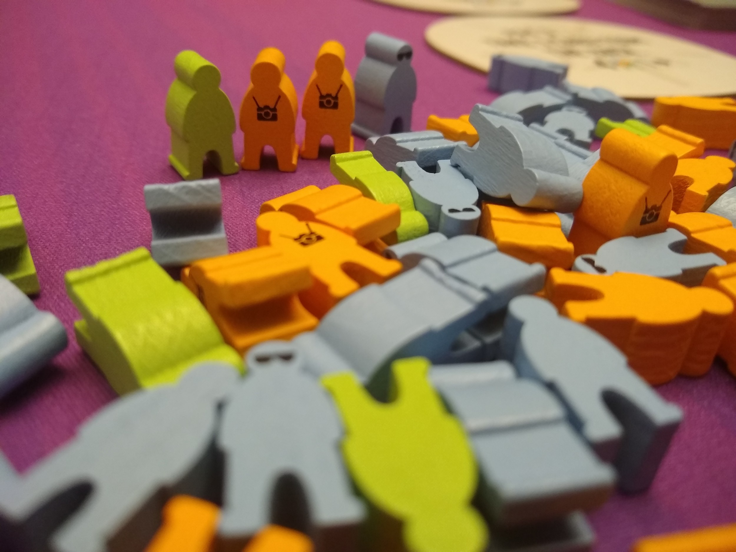 - Components – Cute meeples with unique screenprinting; nice quality all around for all cards, cardboard, and wooden pieces