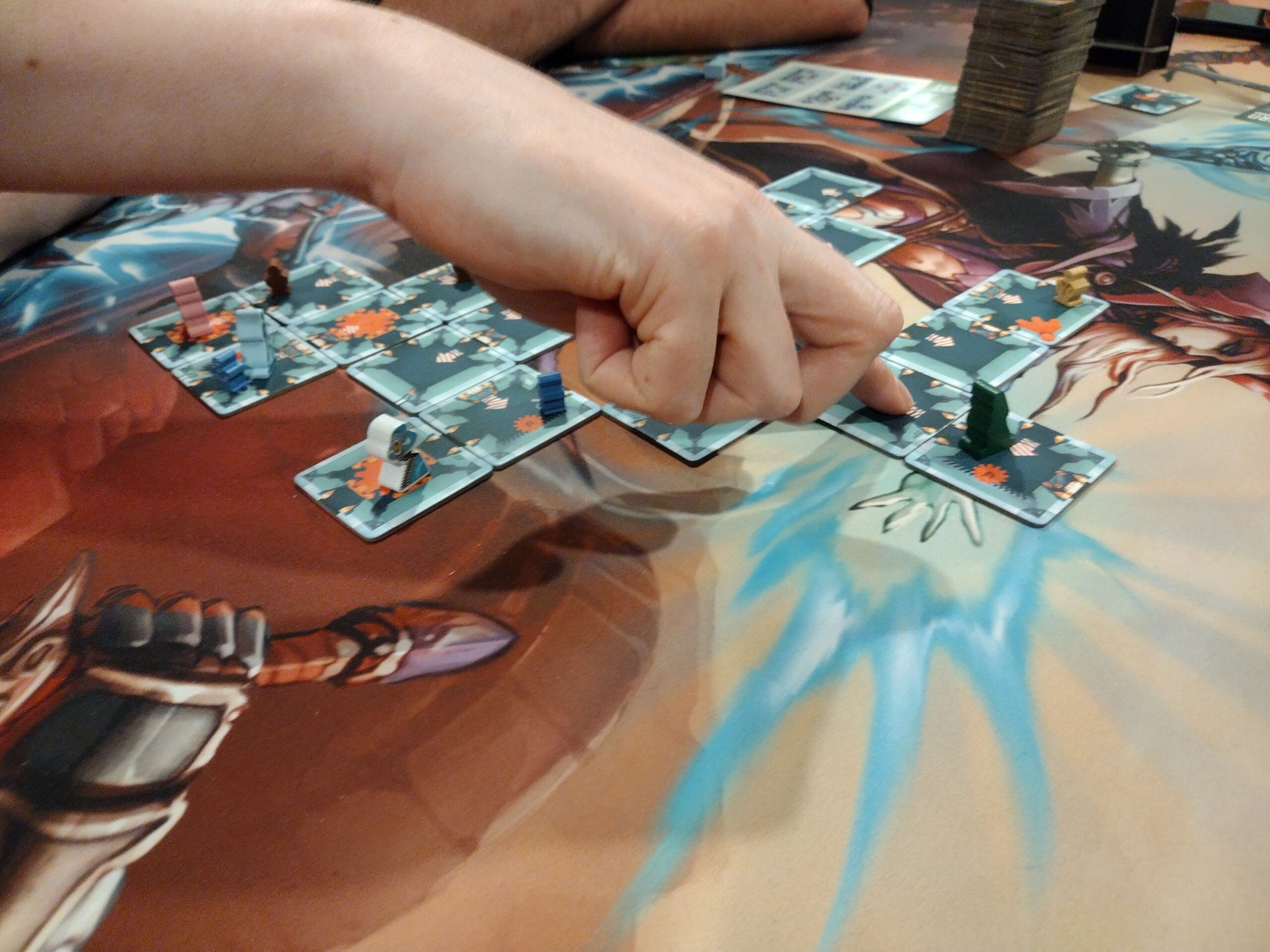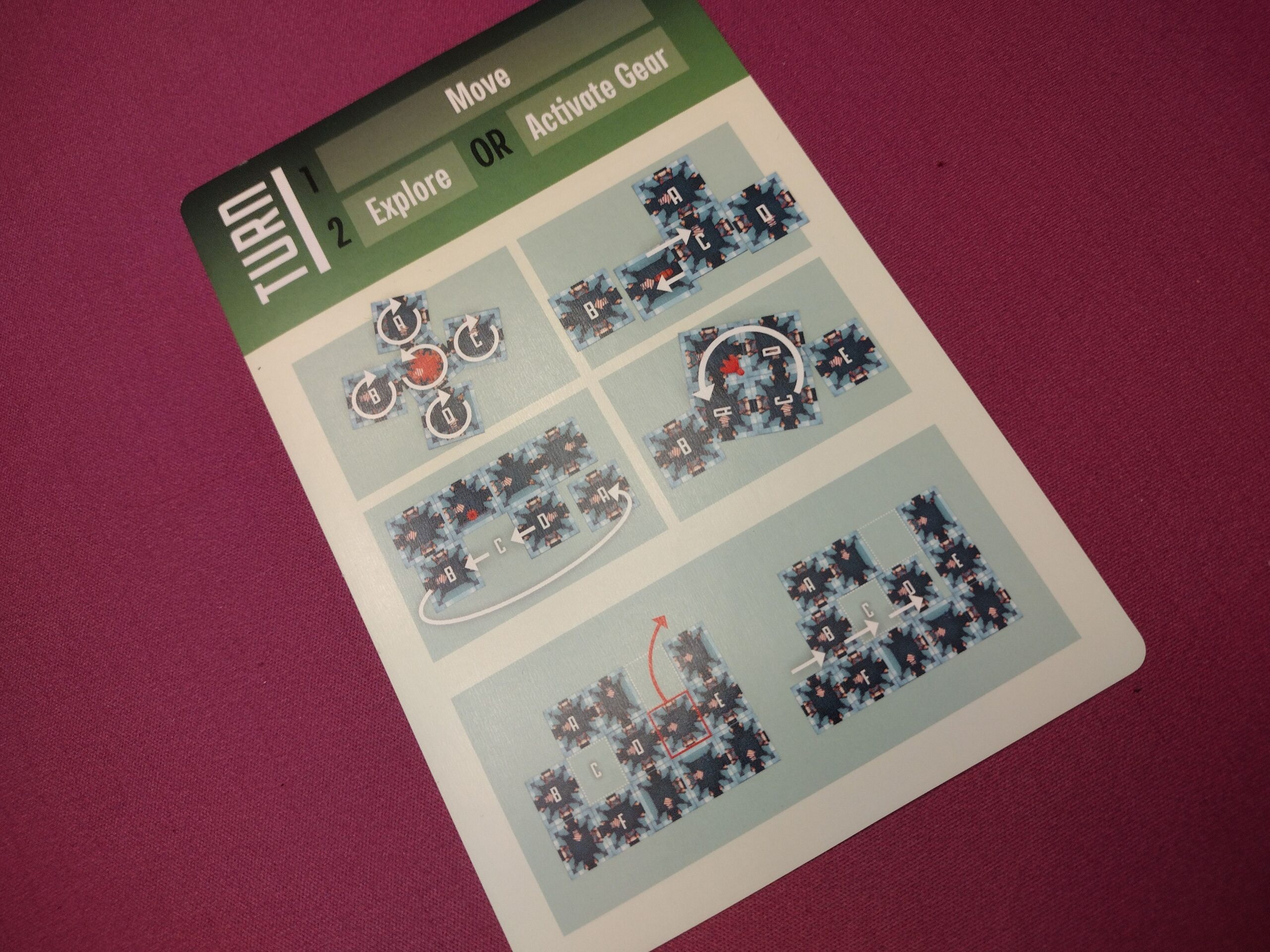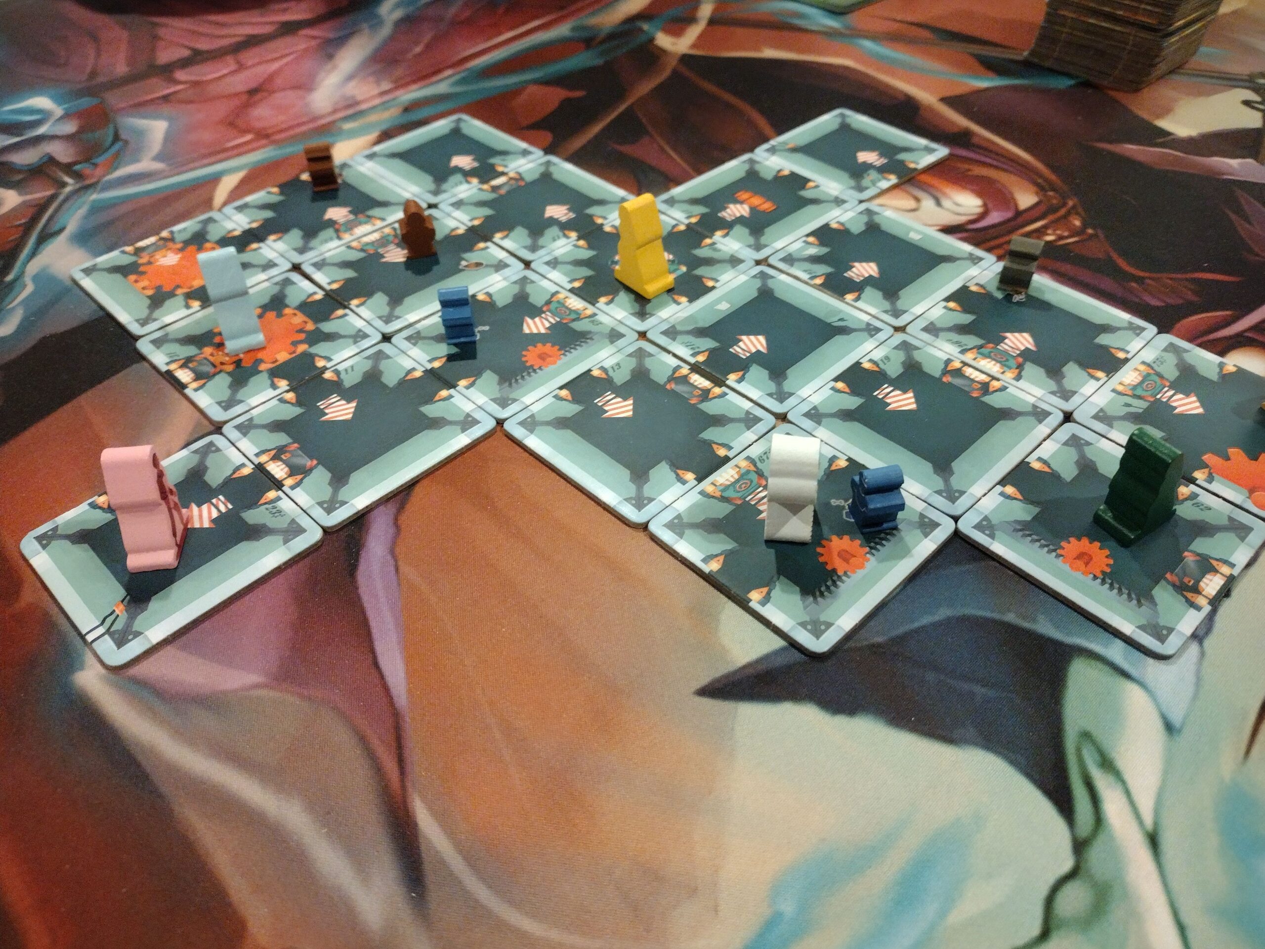 • Gears – I thought the way the gear activations worked was confusing. The reference card had images, but no descriptions, so it wasn’t always easy for players to understand; we had to keep referencing the rules, which took more time. Additionally, there was constant movement of the tiles in the grid, which became tedious after a while