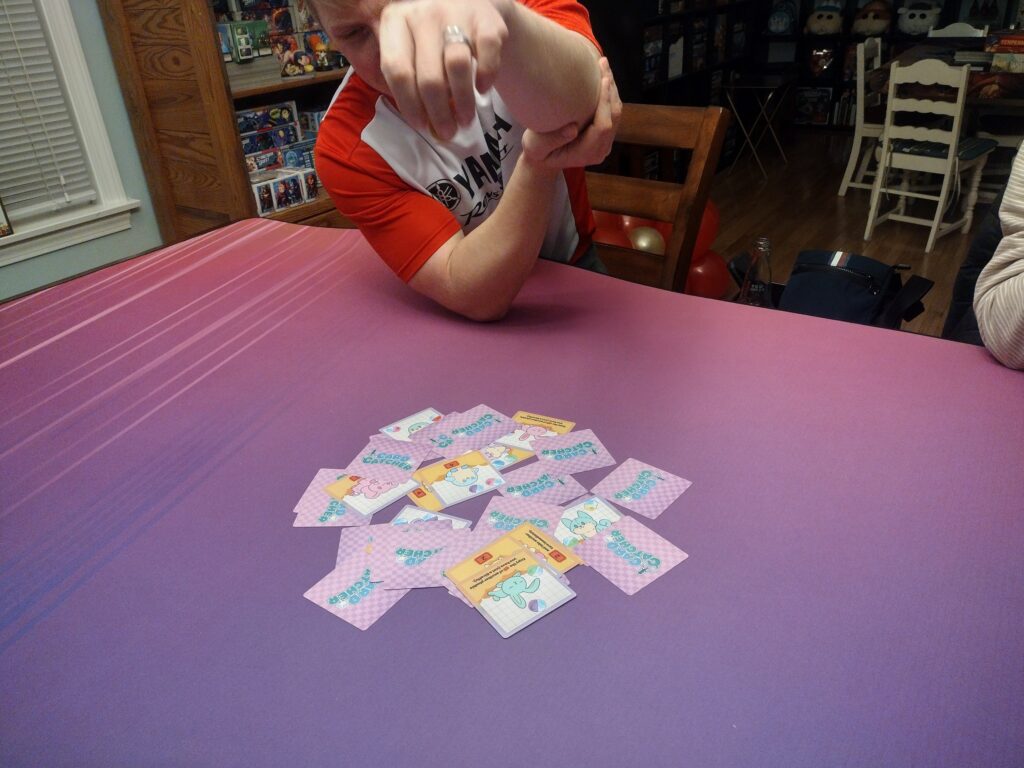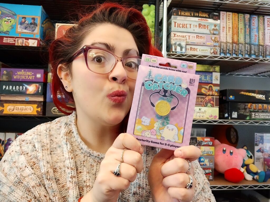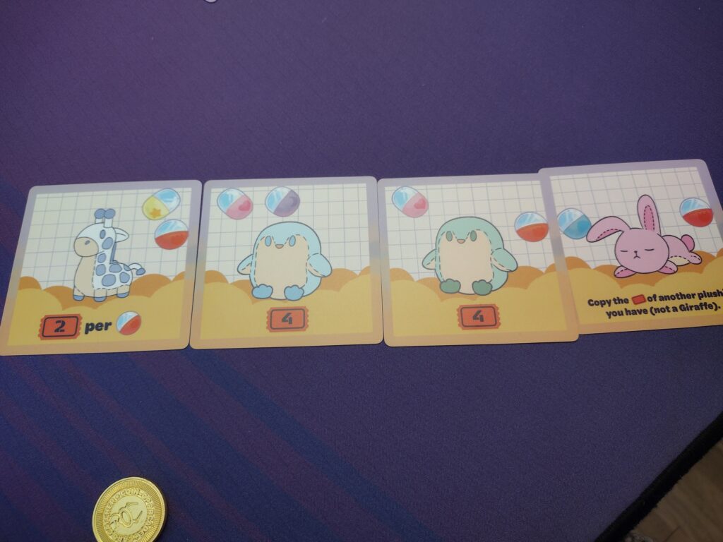 Dexterity – Each turn, the active player will use their arm as a crane and drop a coin onto a pile of cards to try and collect a plushie!