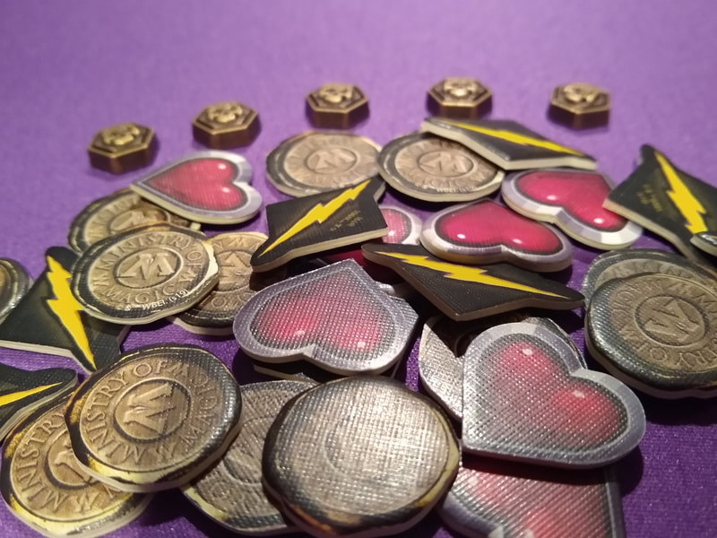 • Hufflepuff actually has 2 less House affiliated cards. This was a misprint and the “Feather” cards should be Hufflepuff (there’s a small discussion of it on BGG, and it sounds like they are still being printed), but it does mean that it’s less likely that House’s cards will be in the market, and creates a slight imbalance if you start with that House as opposed to another
