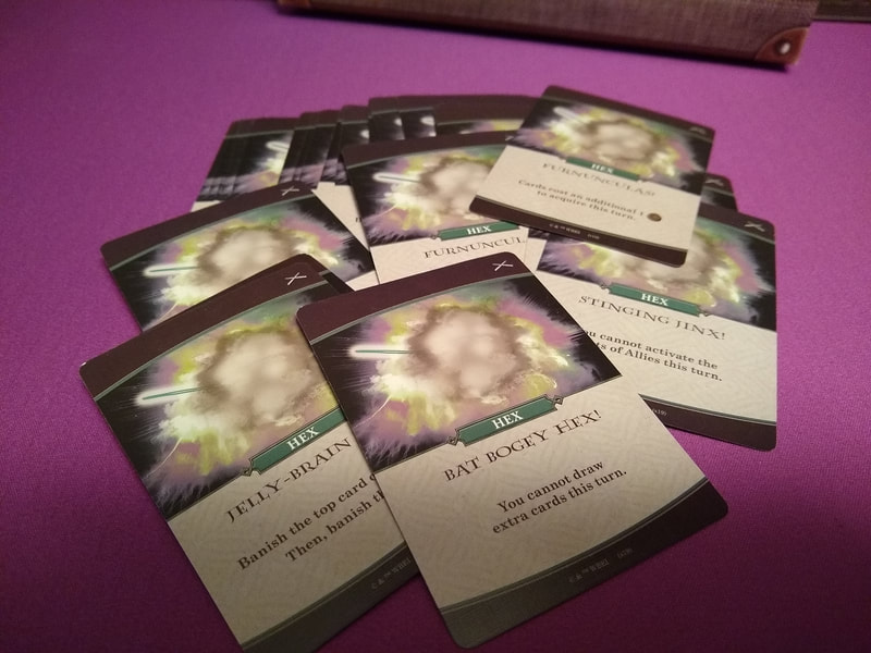• Hexes range from small penalties (like cards cost 1 more) to crushing effects (like discarding an ally) and since they come out randomly, it can cause some swingyness in some rounds/games