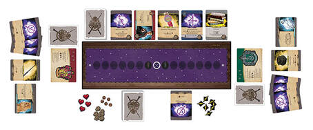 A 2-player head-to-head deck building game played over a series of rounds. Players work to fill their decks with the best combinations of spells and items, as well as allies from all Hogwarts houses, which will allow you to activate bonus abilities on some of your other cards.