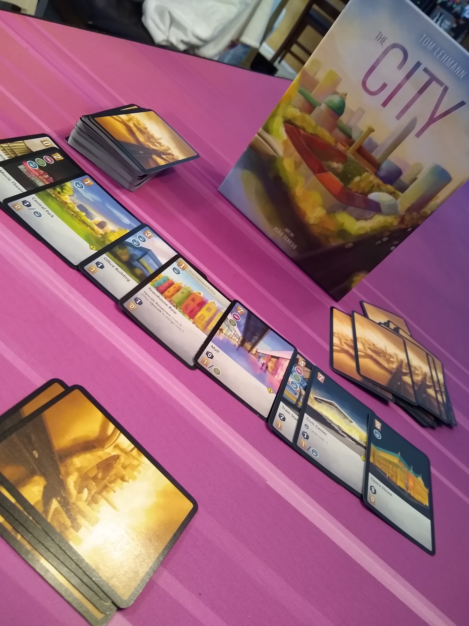 - Theme makes sense (i.e. need people – housing cards – before you can have a school) but when playing I don’t connect with the theme. I don’t feel like I’m building a city, just playing the best card for my engine that I can afford. Every play is the same, it doesn’t feel like I built a different building.