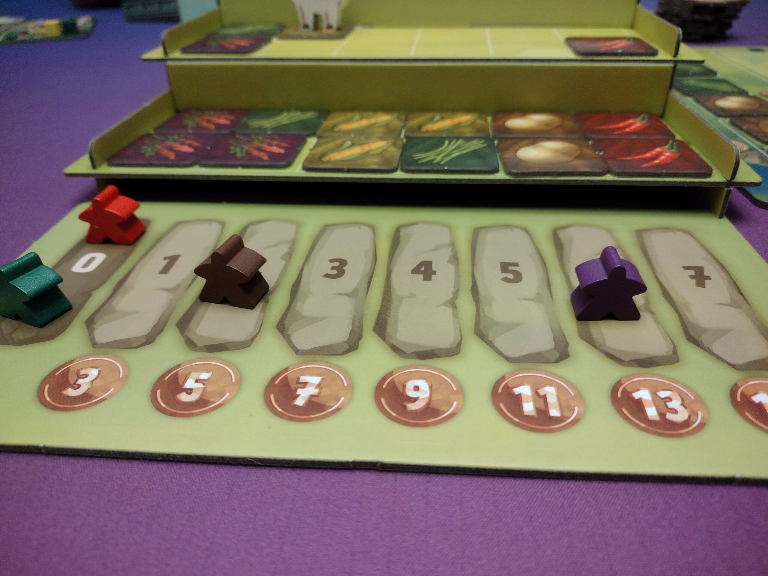 • Ages 12 & Up / Mid-Weight Gamers – Pretty streamlined rules, and quick turns, may be hard for some players to know when it’s best to cash in and reset their harvest points, versus when to hold off in hopes of building up further