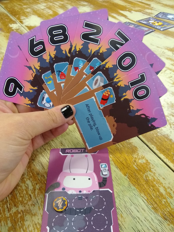If players can blow up the pile and avoid picking cards up at just the right times, they will win the round and some credits! The first robot to 6 credits (or less if you’d like a shorter game) is the ultimate victor!