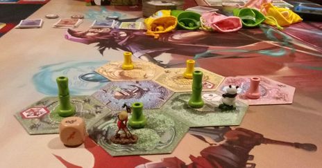 Adorable pandas, interlocking bamboo trees, even a fun little farmer mini too – what’s not to love? The game box and pieces are cute to say the least, and upgrades are available (translucent water pieces, bags to hold the bamboo pieces, et cetera) which make it even nicer. The colors are bright and fun, and when the board has spread out a bit, it really is something to behold. Love it every time!
