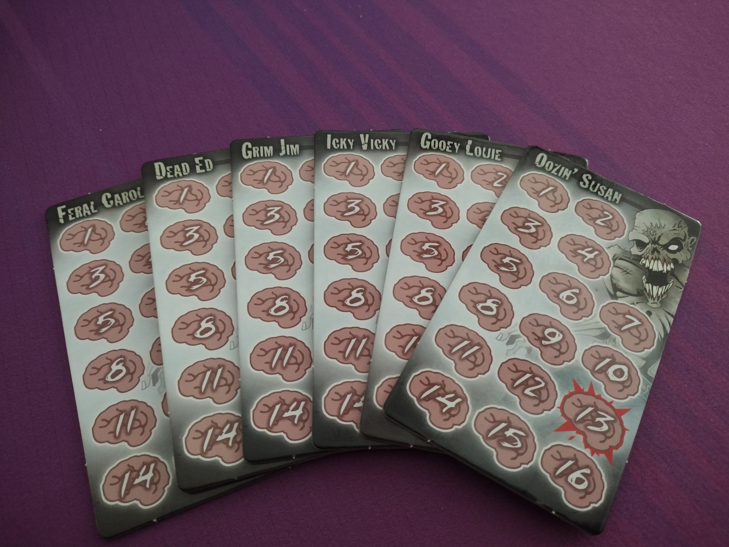 - Art is nice, but is the same zombie image on the box, bag, and boards. Would have liked to see some variety