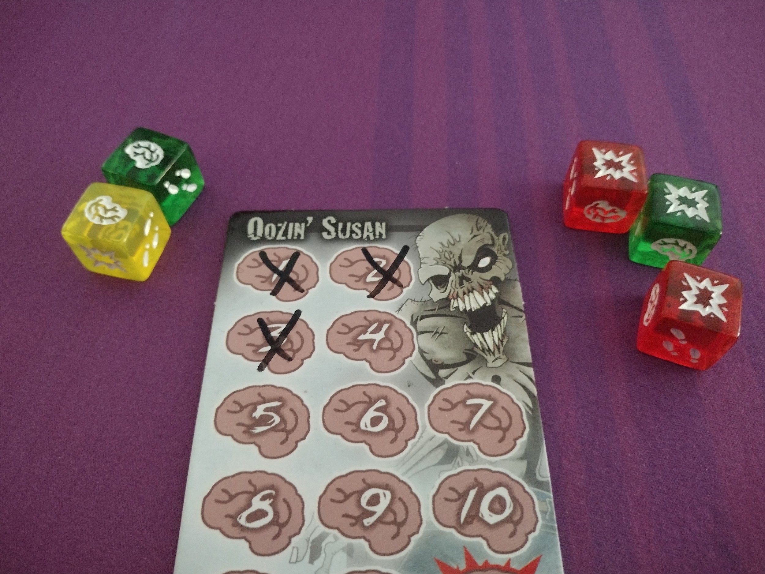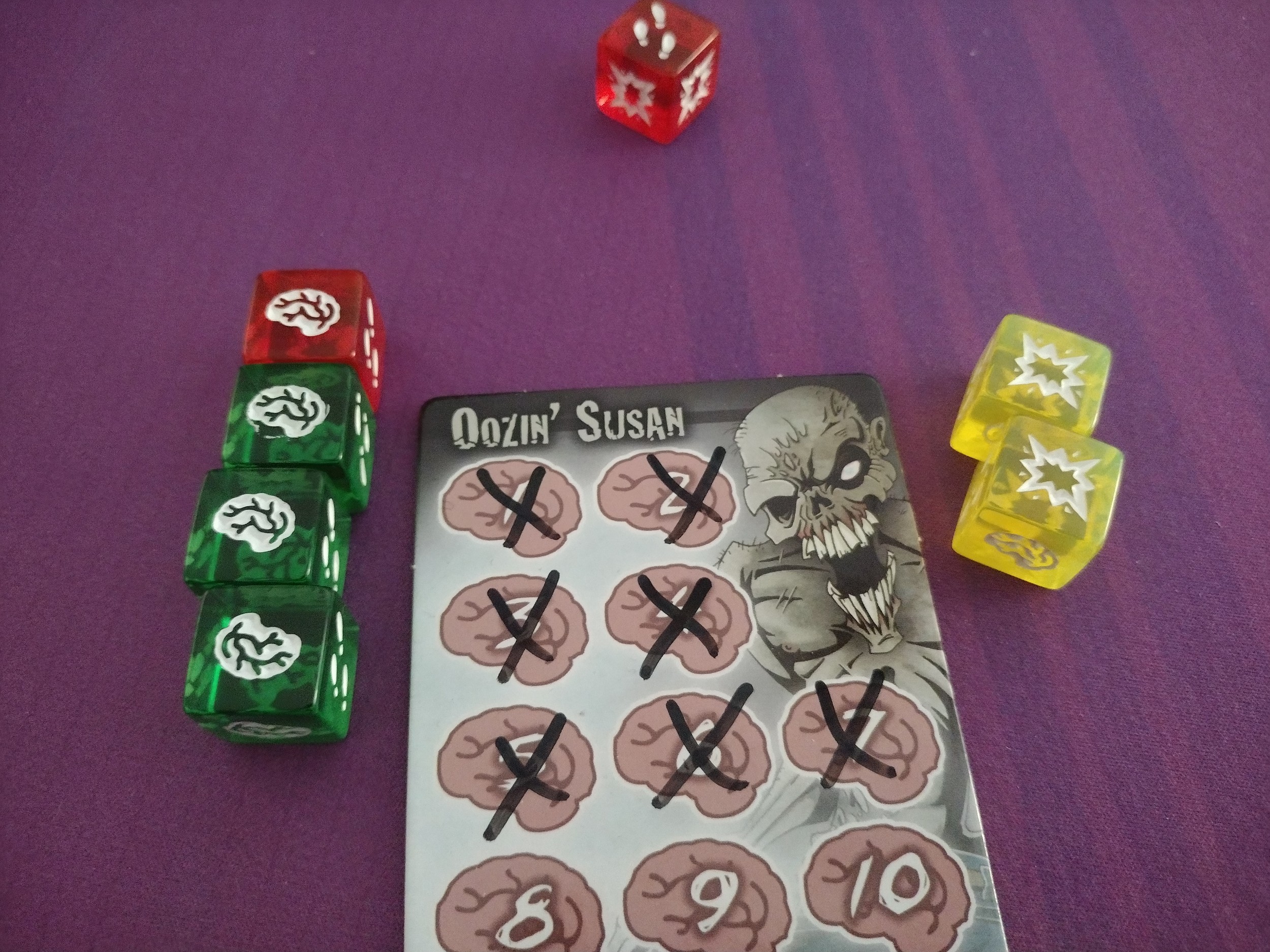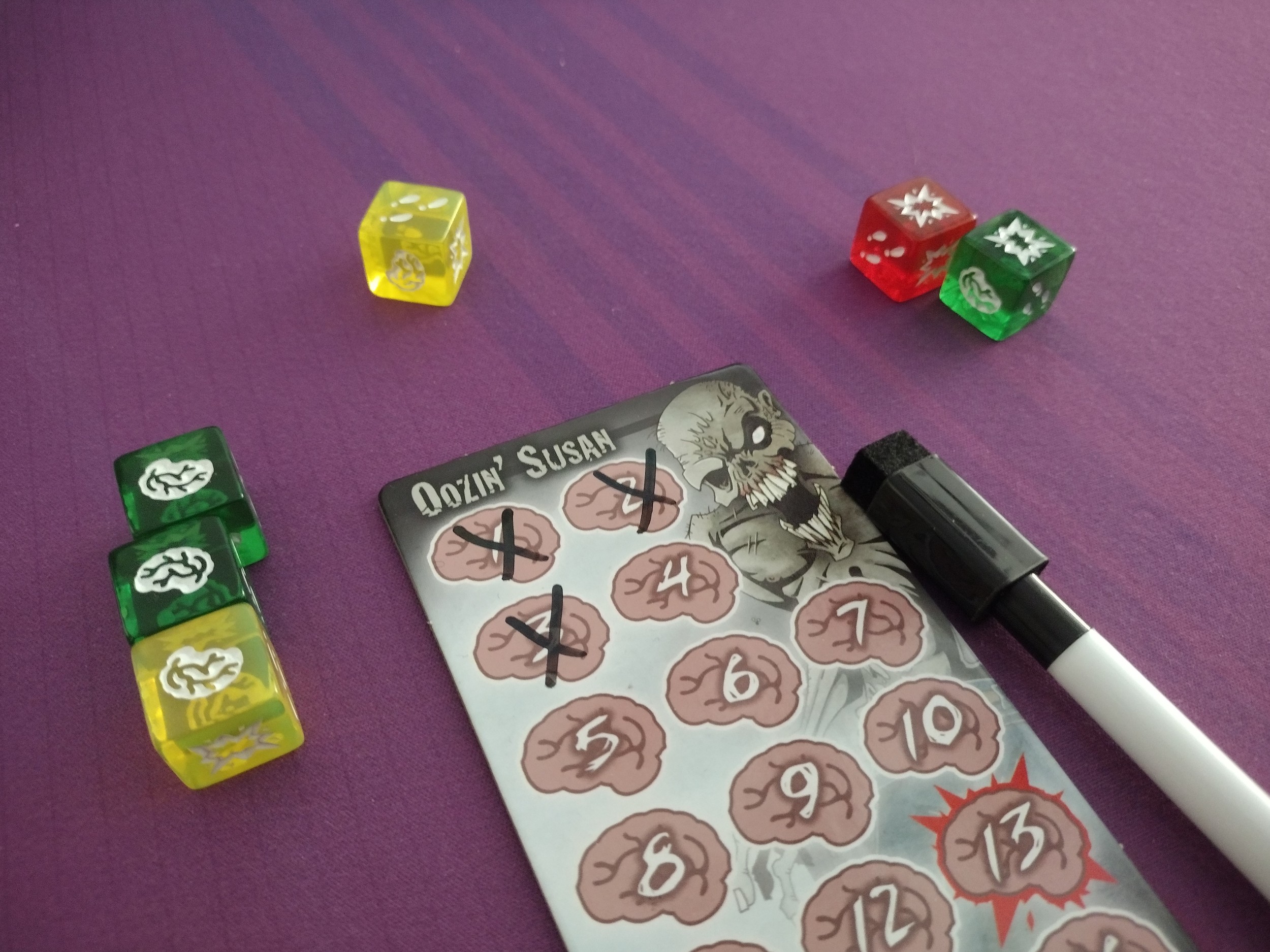 While it isn’t a super thematic game by any means, it’s a fun game where you can pretend to be a zombie hungrily hunting some brains, and just have a good time rolling some dice!