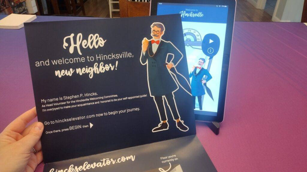 Welcome to Hincksville, neighbor! Of course, now that you’ve joined our quirky community, you’ll need to solve a few puzzles to get to the top of the building and earn your elevator pass. Sounds fair, right? Let’s get this little challenge started!