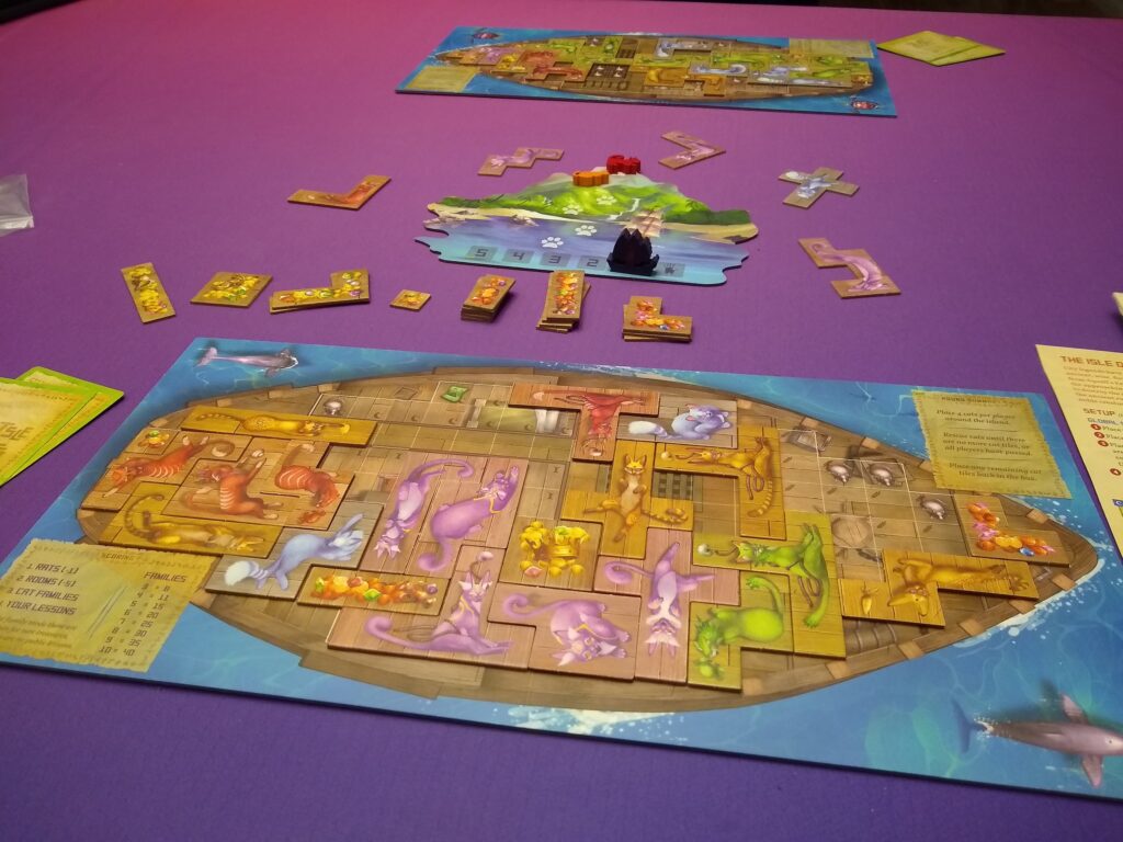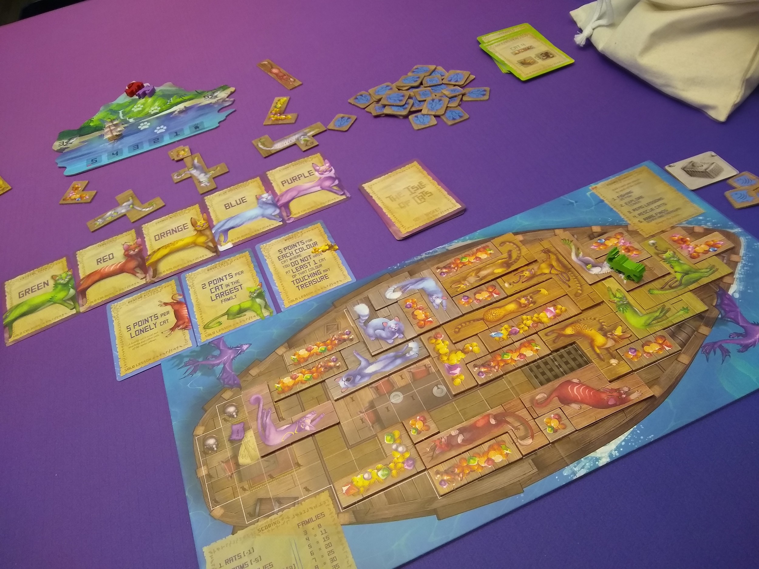 This game definitely lives up to the hype! It was pretty “thinky” trying to figure out how to best fit your cats on your boat, but the puzzle aspect was neat and worked well. It’s neat that you can try to go for huge families of one color, or a bunch of smaller ones, and there are a lot of opportunities for treasure to help fill in gaps.