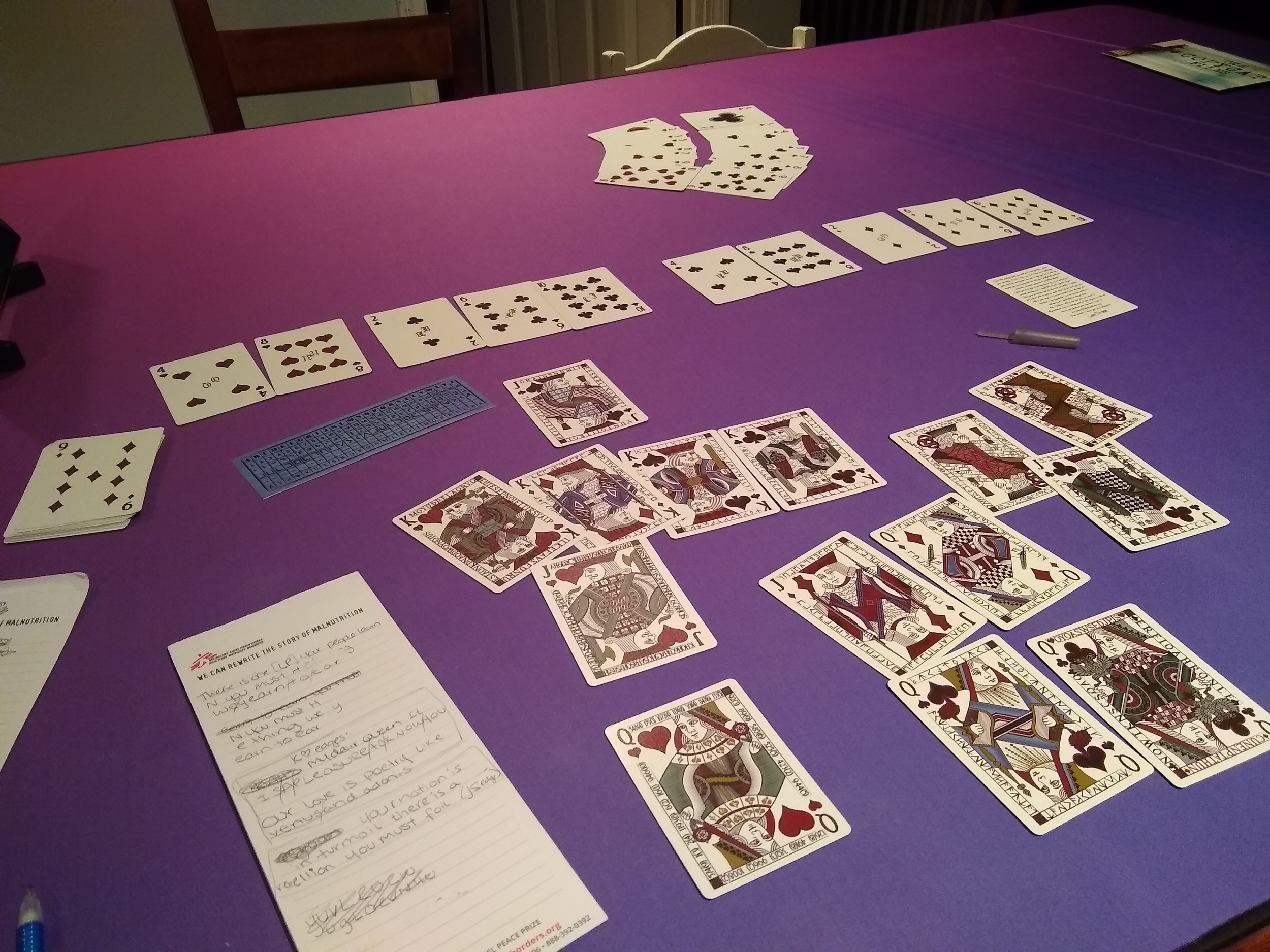A puzzle solving game that attempts to bring players into a story being told through only a deck of cards. Players must solve ciphers, find clues, and weave together the information they find in order to succeed.
