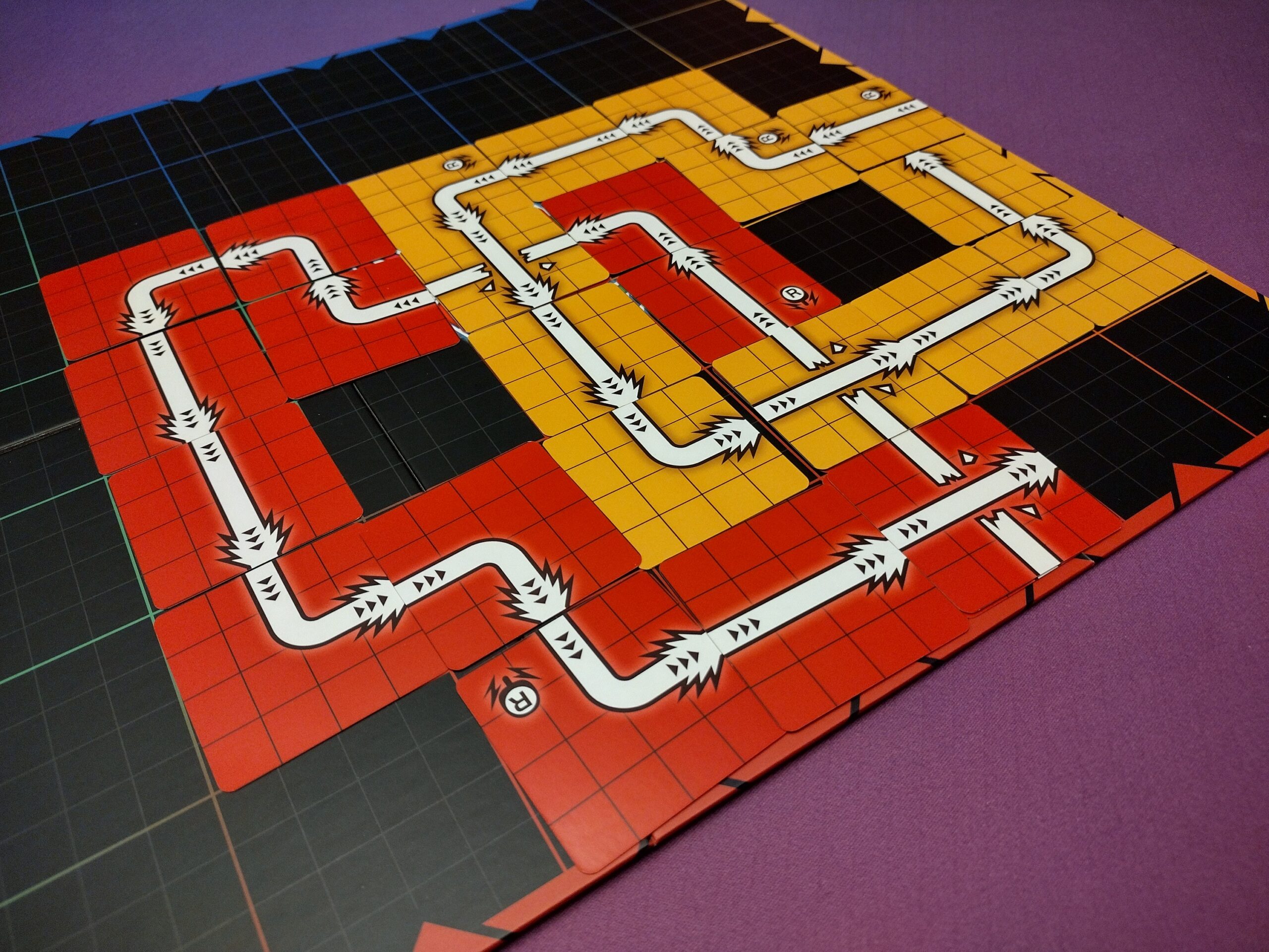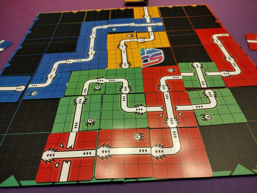 I could not help but compare it to Tsuro, which I feel is a classic in this category. It was similar in nature, but felt fresh since it gave each player their own deck, and more opportunity for strategy because of the Breakthru and Reverse cards.