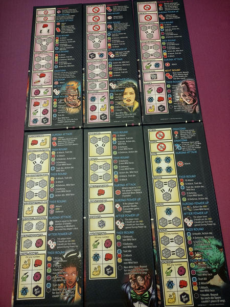 2 vs 2 Team Up – Allies add their health together and have their own pools of dice and die faces available to their team. Each round teams can use team up cards between them to get various effects – as long as a die is placed on both sides of the card. Play is the same as the 2 player game, with the addition of those cards, and players having to choose their target on the opposing team. It’s a cool mode that really varies the game because, even though the luck of the dice is still there, your strategy really changes when you have to work as a team and play to 2 different types of strengths, depending on your characters.