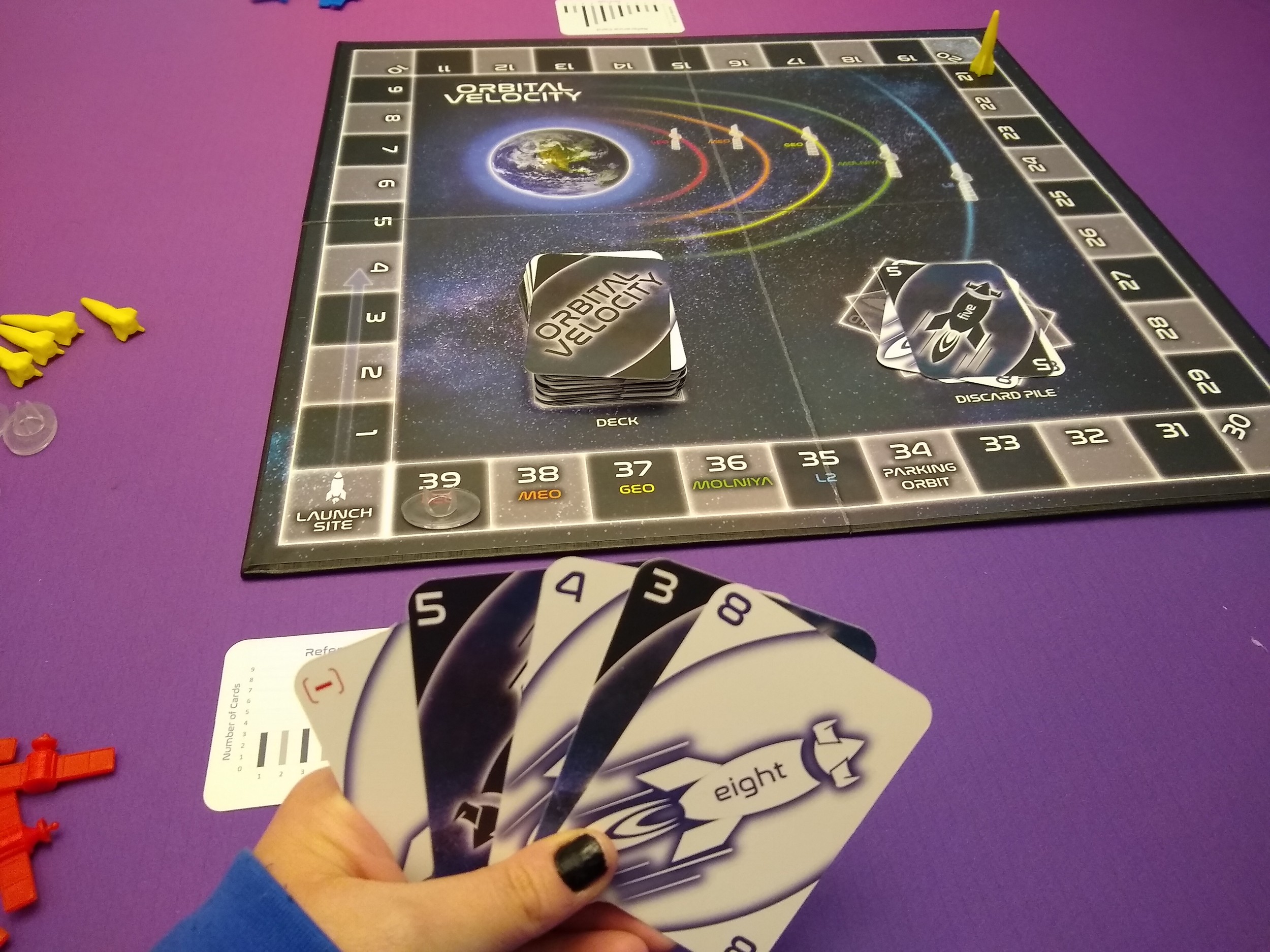 The box is a good size for what’s in it, with nice cover art, and the rules are straightforward and easy to learn from, plenty of examples and images. Plus, the rules also have some science facts (the physics of orbital velocity) which is neat for those who want to learn more!
