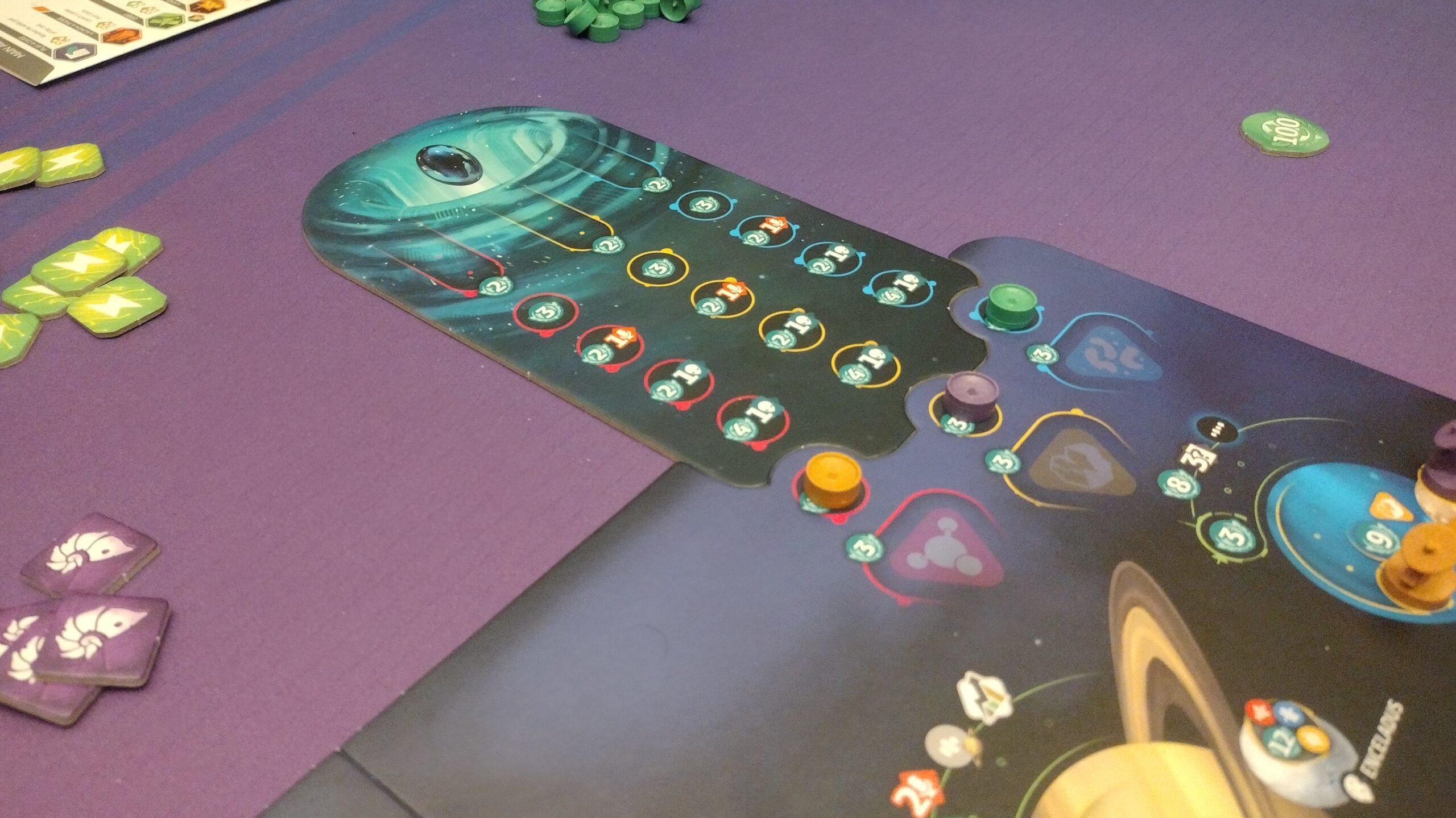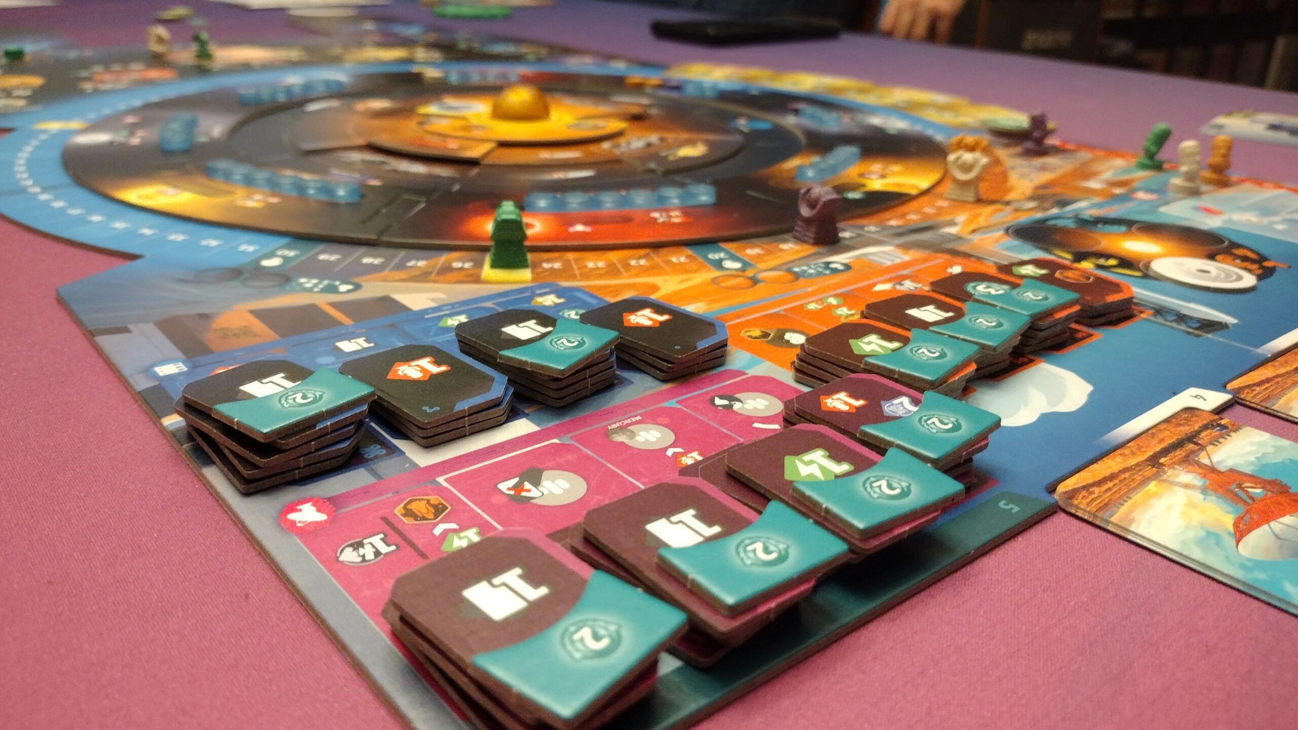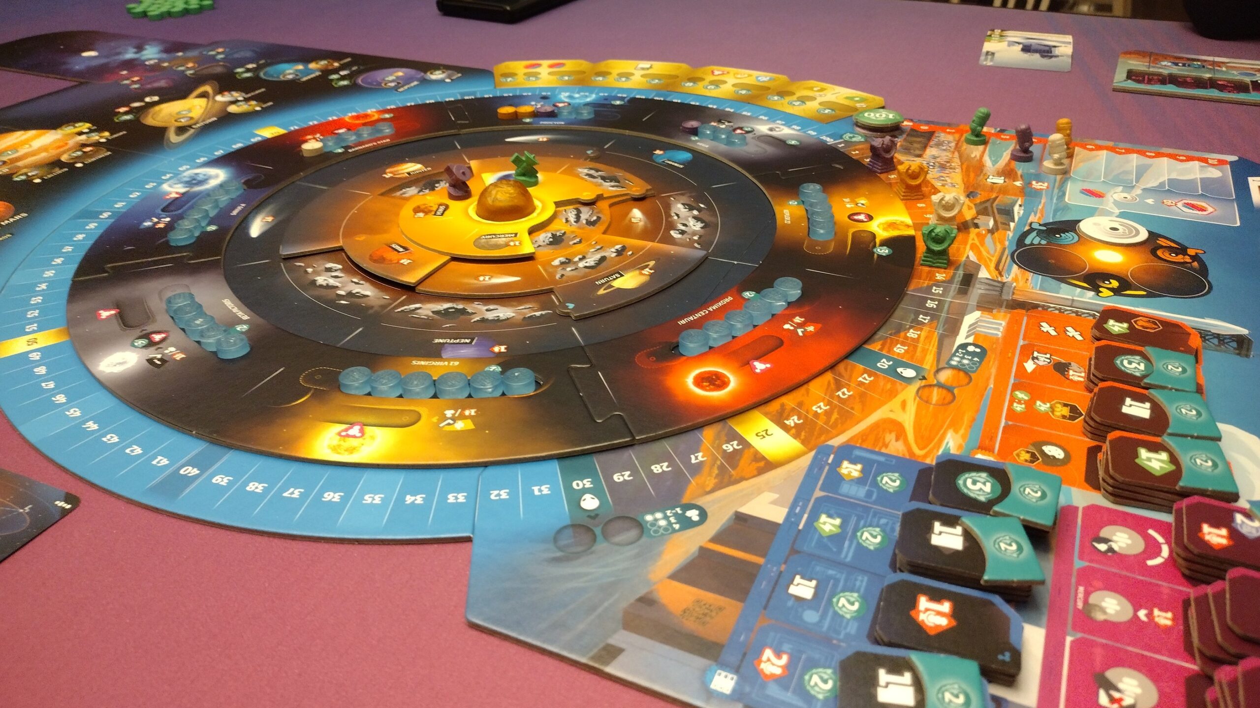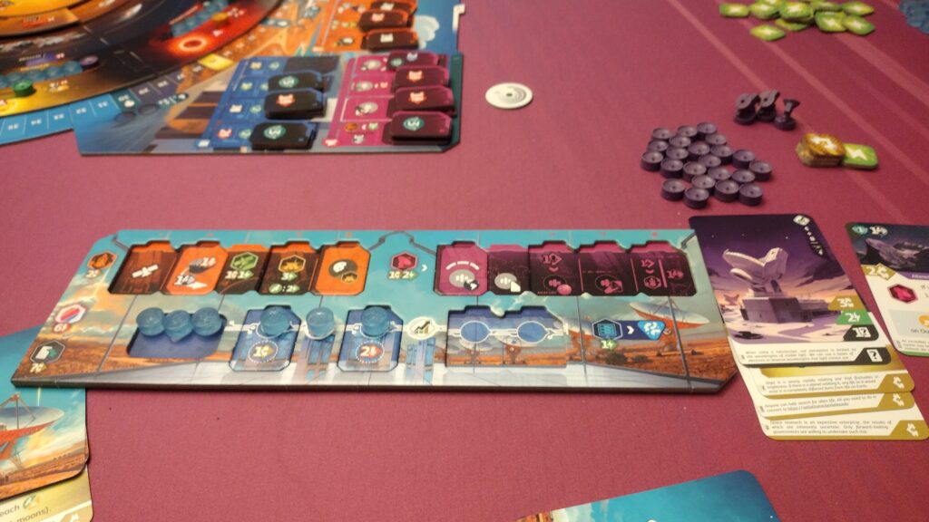 Area Majority – Players can add their markers to various sectors on the solar system board through the “scan” action. When full, the sector resolves, and the player with majority will get additional bonuses