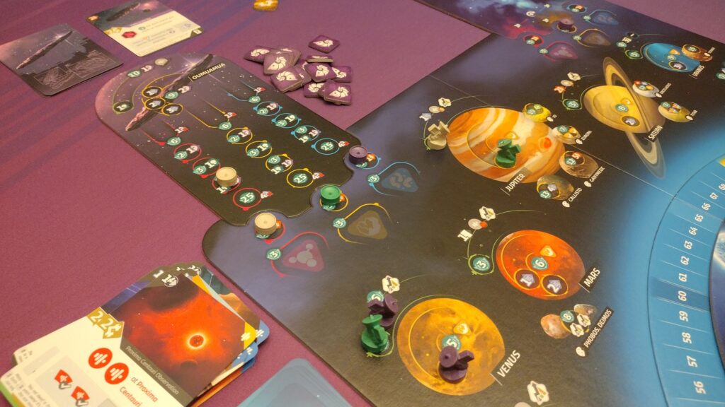 At the same time, I want to point out that others I played with focused more on scanning, and others on orbiting/landing on planets. There are a lot of paths to try, and it seems that you can be fairly successful going any route. However, the biggest thing to note is that it’s important to get points early on so you can get on those end-game scoring tiles, because if you aren’t quick to grab those higher points, you may fall out of the game in the end.