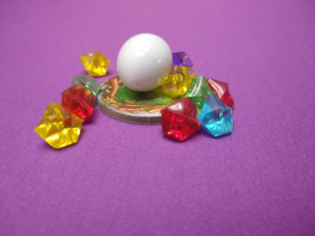 - Components – Nice gems, great dragon token, cute little treasure chest which fits in the box still assembled, the ice rings stack easily as well