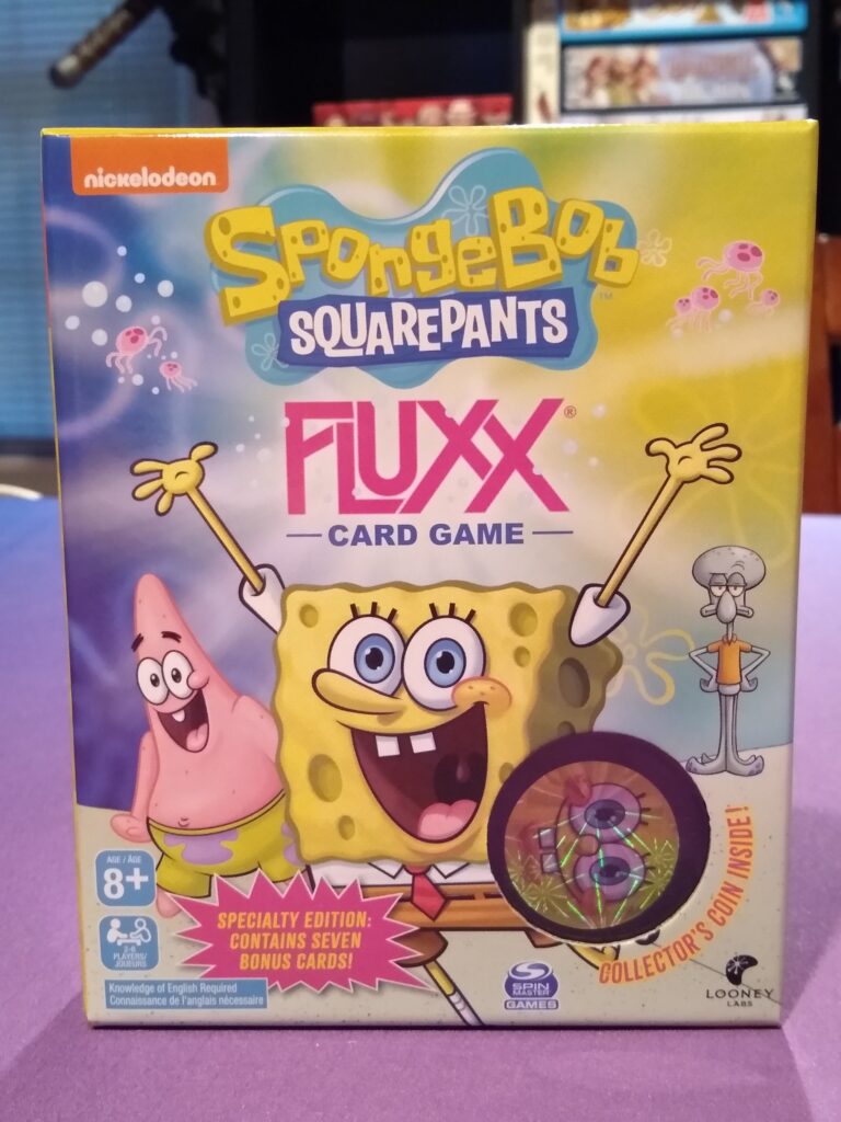 So, as you may know, we’ve looked at Fluxx before as well as Jumanji Fluxx, and even Marvel Fluxx! But today, we’ve got a new theme and a loveable sponge and all his friends to feature! Get ready to visit that pineapple under the sea in this latest edition of the favorite fluctuating card game!