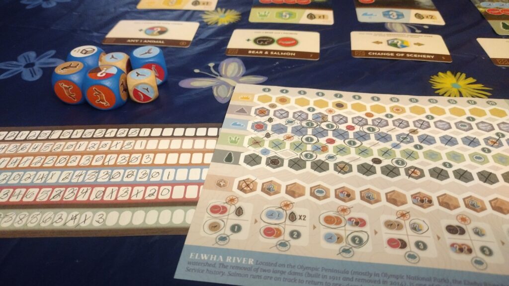 Roll dice, collect wildlife, and complete habitats! With 4 maps to choose from, plus solo scenarios and achievements, there’s plenty of variety in how you can create the best ecosystem in Cascadia Rolling Rivers! Let’s check it out!
