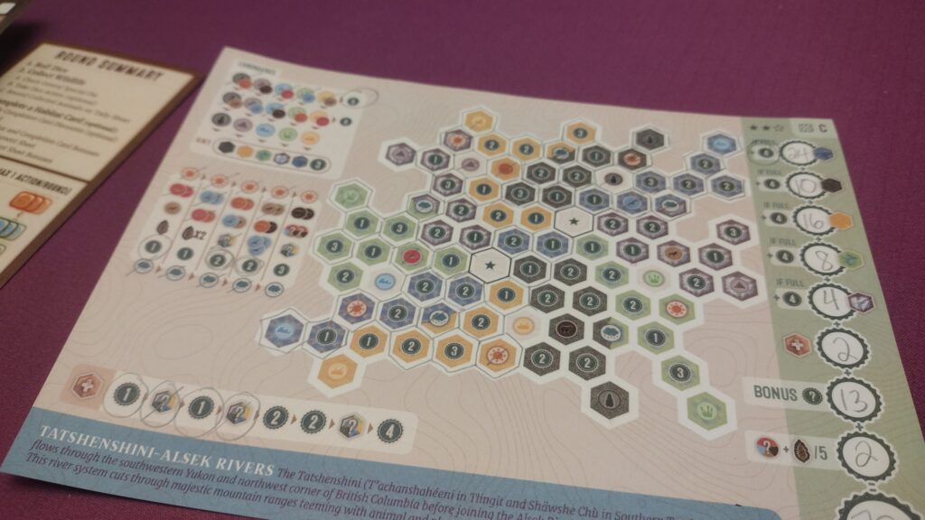Maps – There are 4 different maps to choose from which vary how players fill in the areas, based on the value of the habitat cards they complete. Map D plays the most closely to the original game since you fill in animals and score them similarly. – They all feel unique and offer good variety.