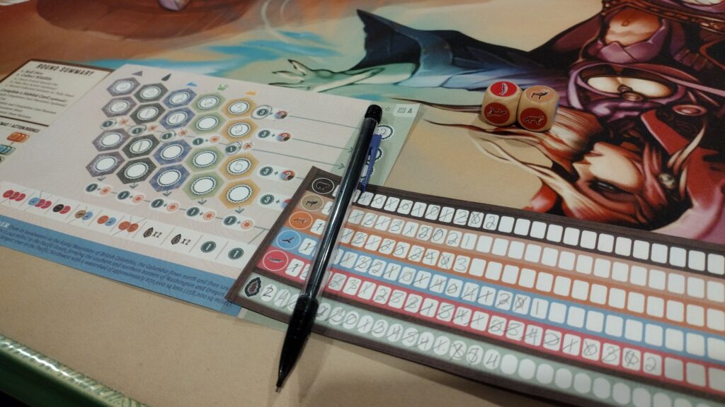I thought this game was a fine roll and write. Smooth gameplay and as long as you don’t mind a very “multi-player solitaire” game, then you’ll probably enjoy it. It sits close to Cascadia in theme, of course, and map D scores animals similarly, but it doesn’t have the added puzzle of trying to connect your habitats and compete for largest of each, which is missed. I personally prefer Cascadia because I think the tile laying aspect works better with the ecosystem theme, but this is a decent roll and write, so if you enjoy the genre, check it out!