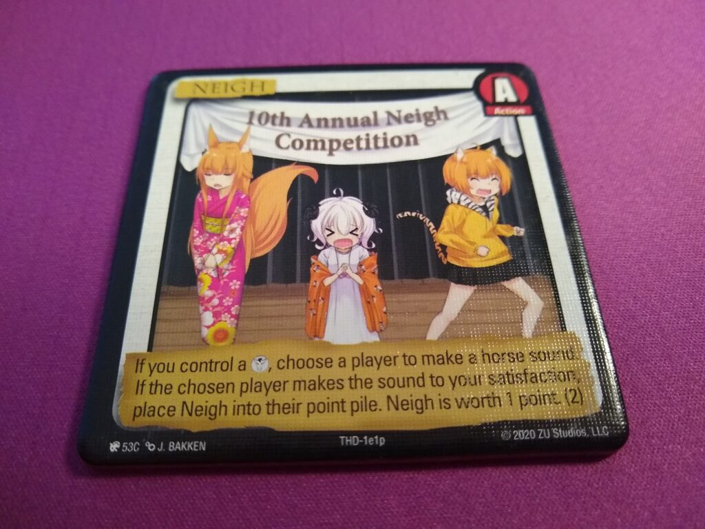 - The Neigh Tile was weird to me. If you picked your opponent, you give them a free point, or say they didn’t do well and you played the action for nothing. If you pick yourself, you get a free point without trying… it just felt like a pointless tile.