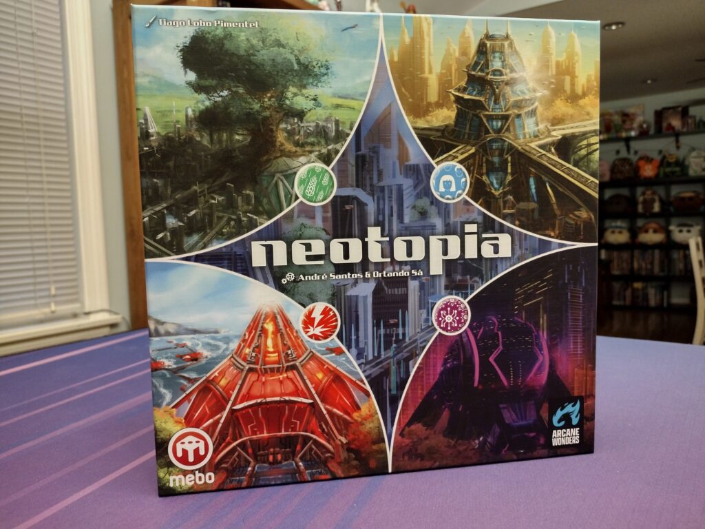 - 2 to 4 Players – I thought it worked well at any count. Of course, the board is tighter at 4, but I thought it was interesting how the different player counts affected how players placed elements, and which projects they chose to complete