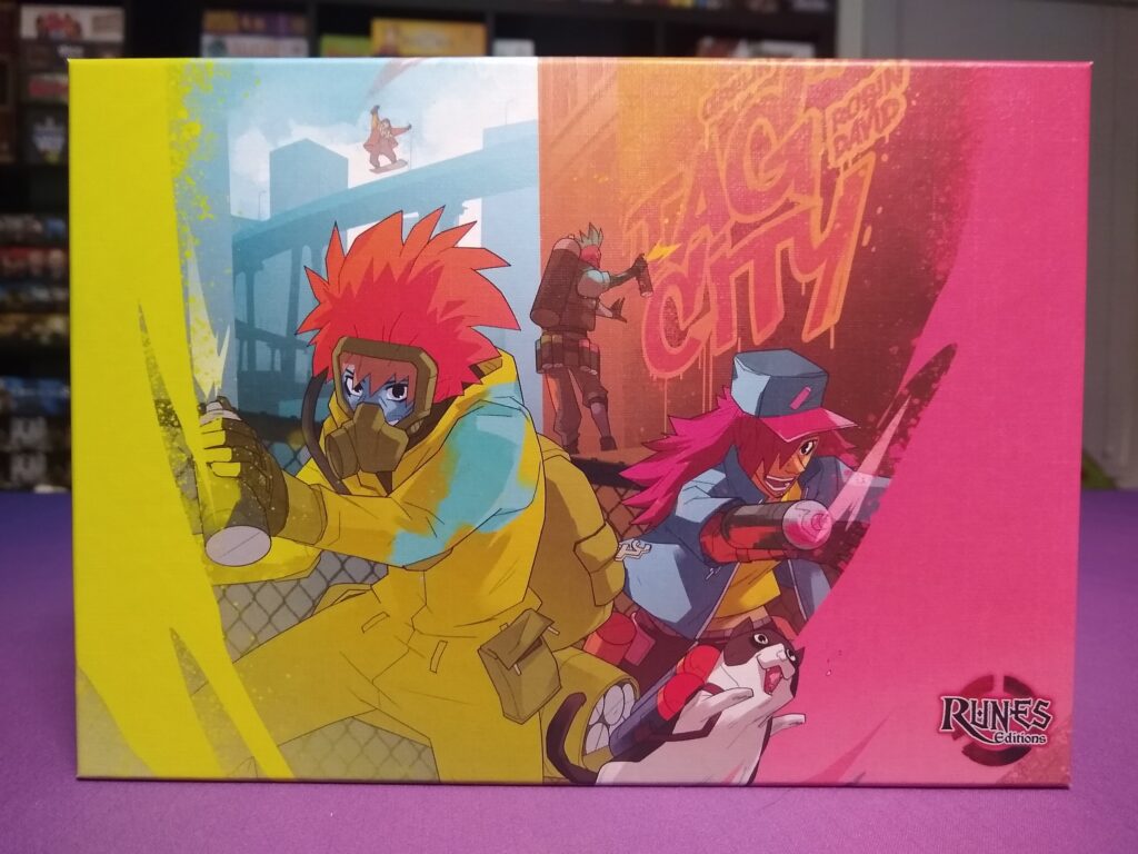 The box is fun and vibrant and depicts exactly what the game is about – spray painting graffiti! Top notch.