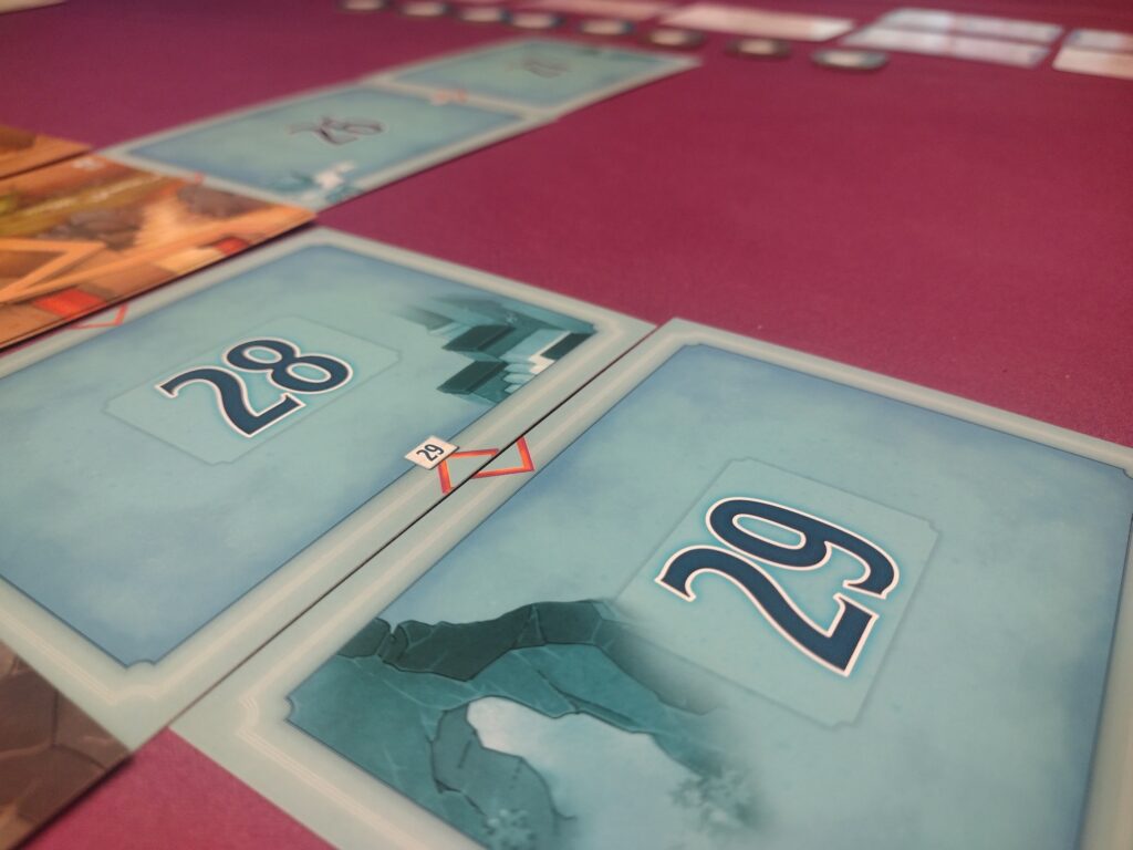 This little 2 player game seems very simple, but there’s a lot of layers to it! (And not just the layers of cards in your grid!) You only look at 2 cards per turn, but there’s a lot to consider for your grid/score, so it’s really engaging, and a lot of fun.