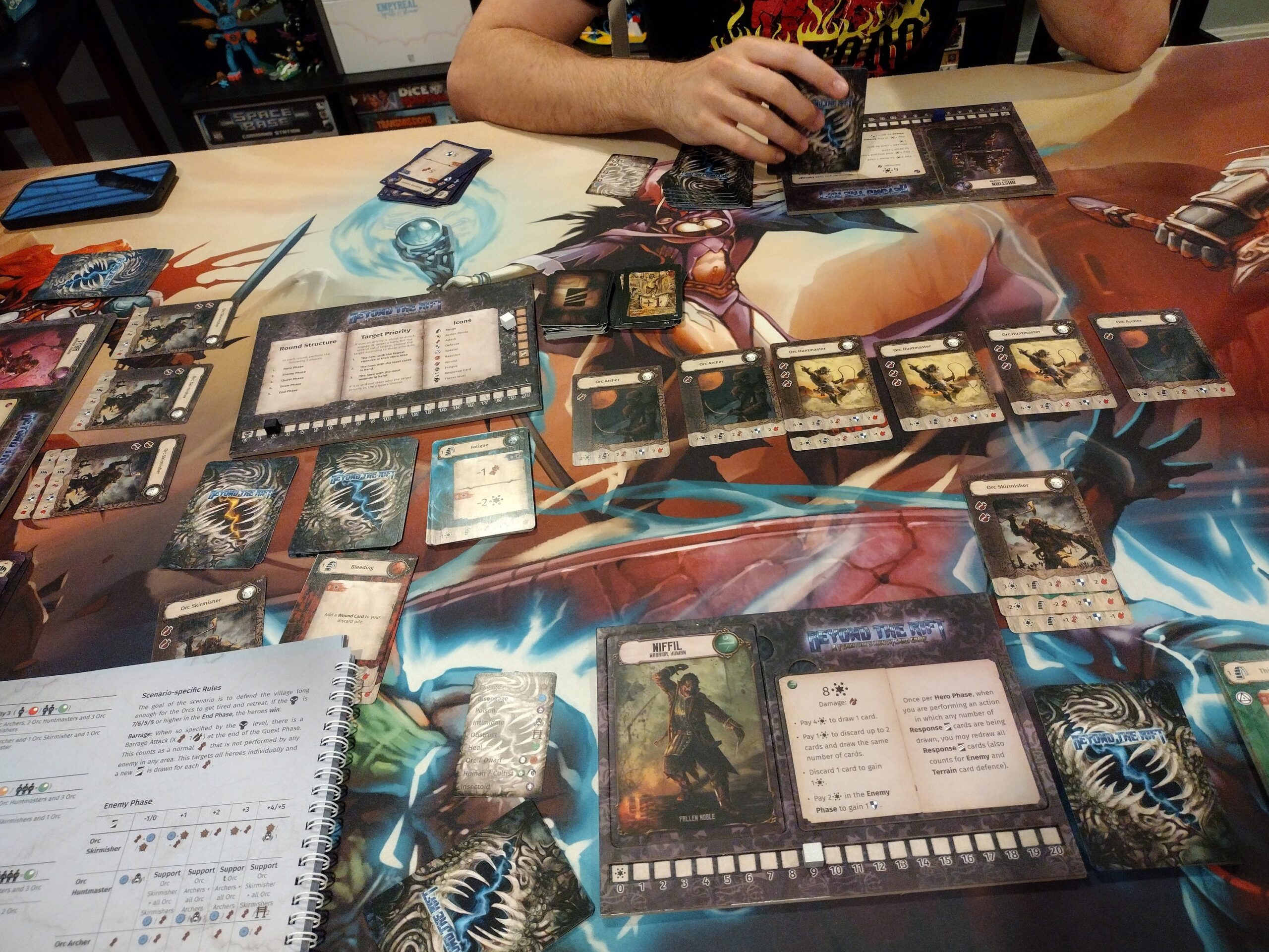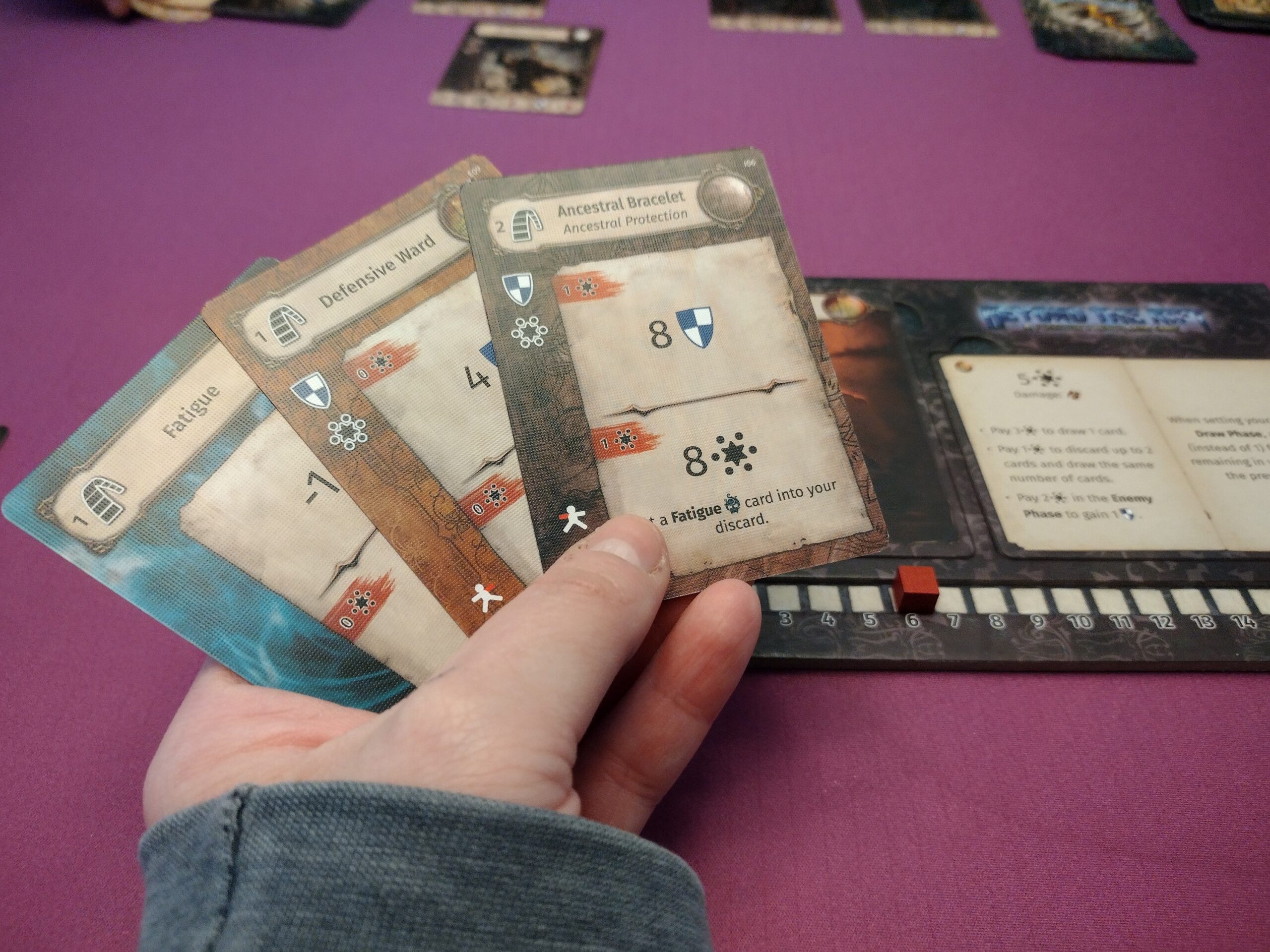 Hand Management – Players only get so many cards (dependent on player count) each round. They must play wisely, and manage them alongside their available action points. If they take wounds or earn fatigue, they lose space for useful cards until they can play/remove those from their hand