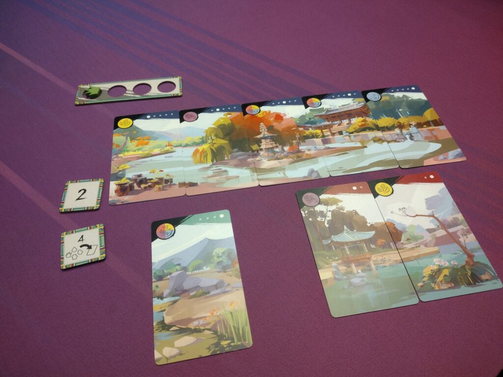 Set Collection – Players need to collect resources in order to complete landscape cards which get built into their gardens. Then, if players collect all the cards in a certain panorama, they will earn bonus tiles which may be points, resources, or expanding their planning tile.