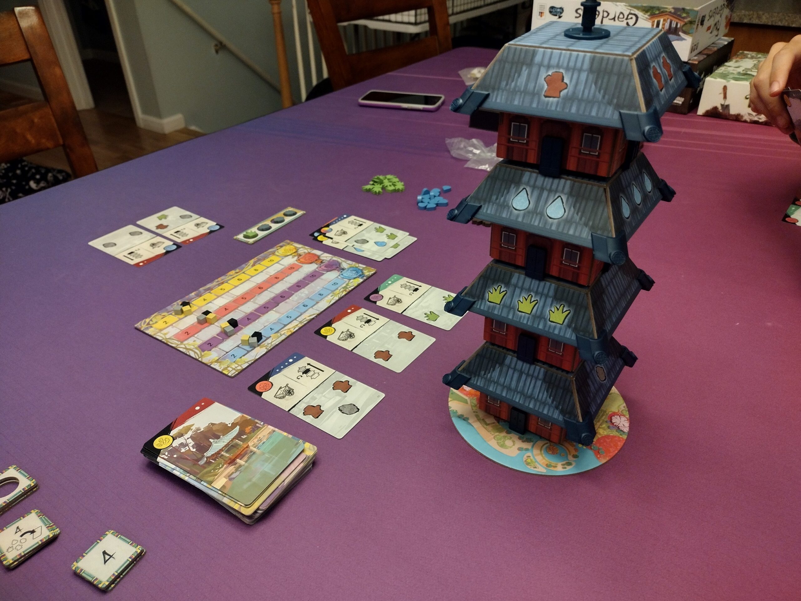 Overall, I mostly found the game to be just fine. The restrictiveness of your cards, since you need them for multiple things, is interesting, but can also make for some long turns as players debate what they can use without hurting their strategy. Add in the restrictiveness of only holding 4 to 5 resources, and having to take things in certain orders according to the pagoda, and it can be very difficult to get what you need at times.