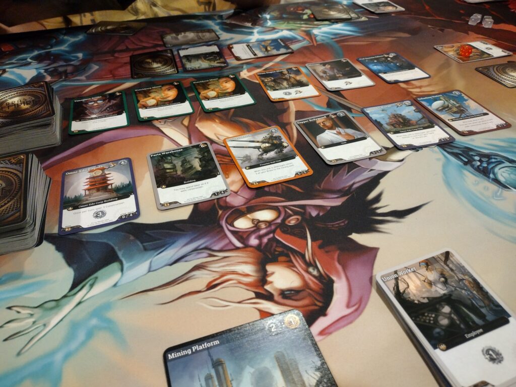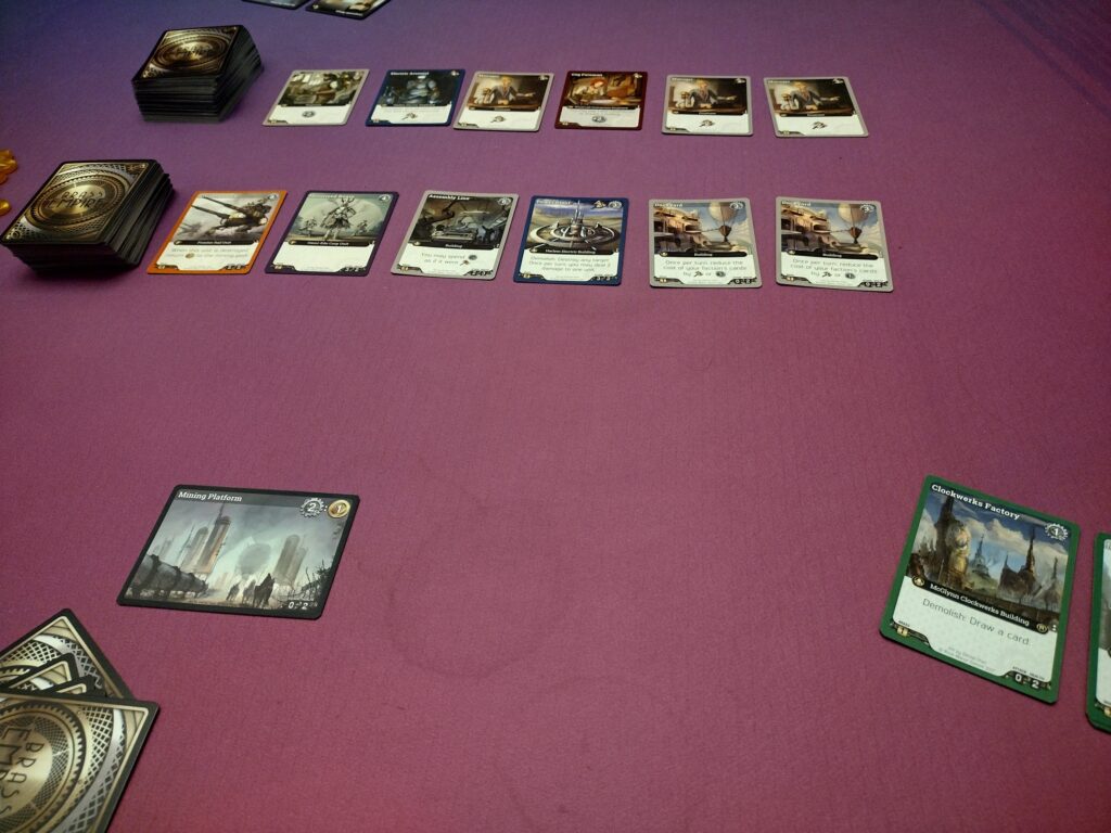 Engine Building – Some cards players can buy are buildings, which will sit out in front of them once played and usually offer some ongoing abilities (i.e. extra resources on your turn).